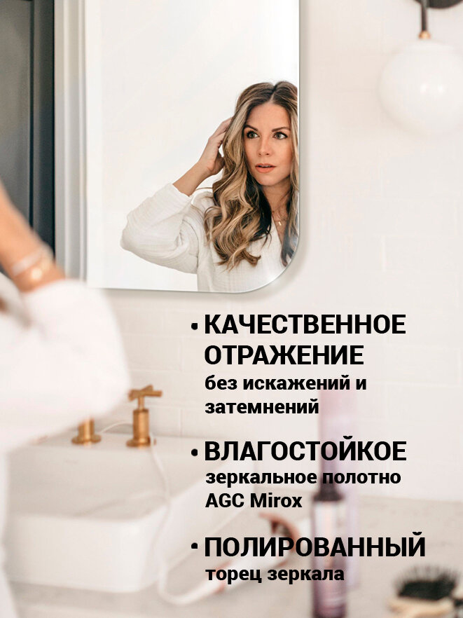 Зеркало настенное для ванной КерамаМане 70*100 см с холодной подсветкой 6000 К с сенсорной кнопкой
