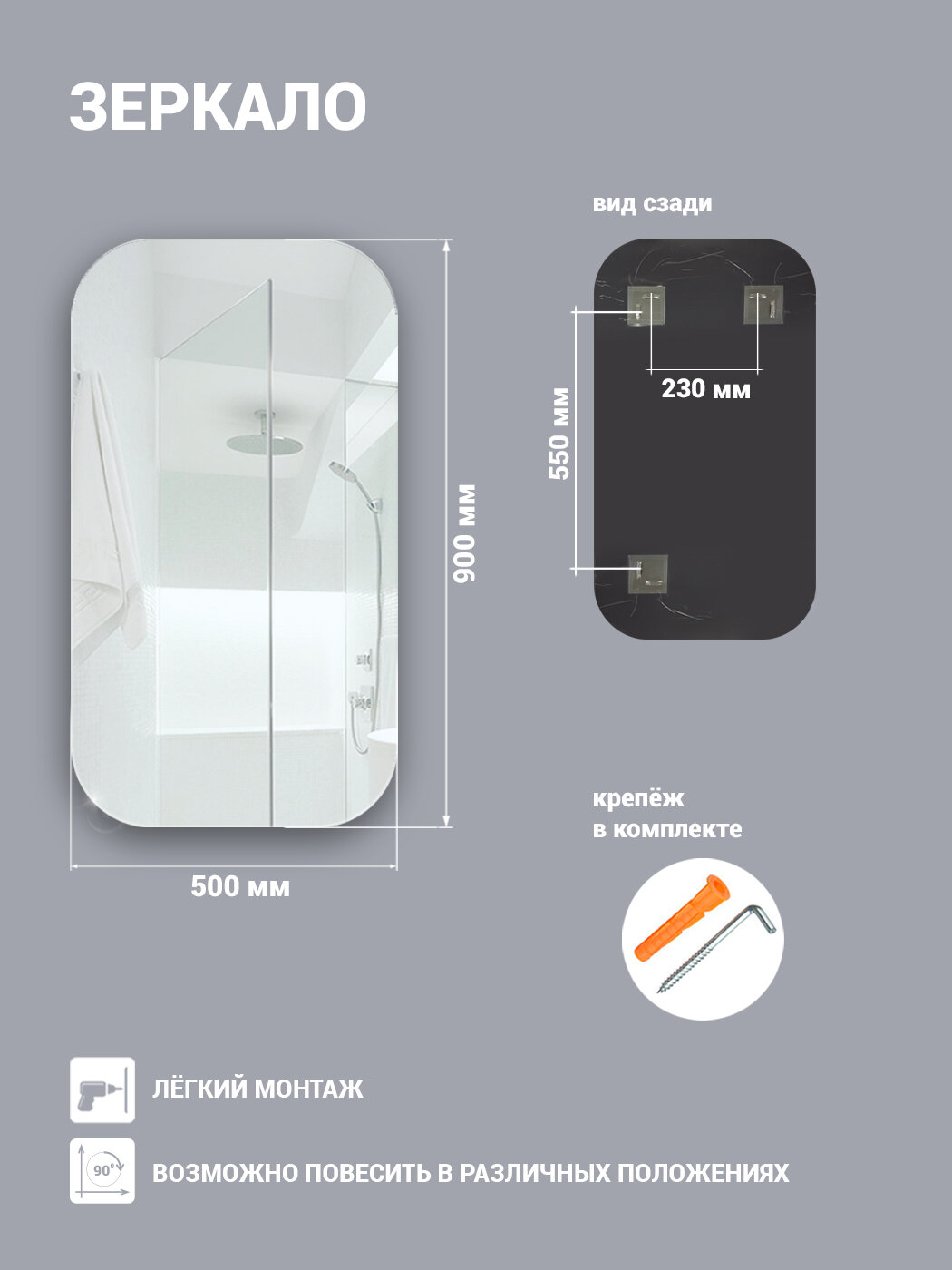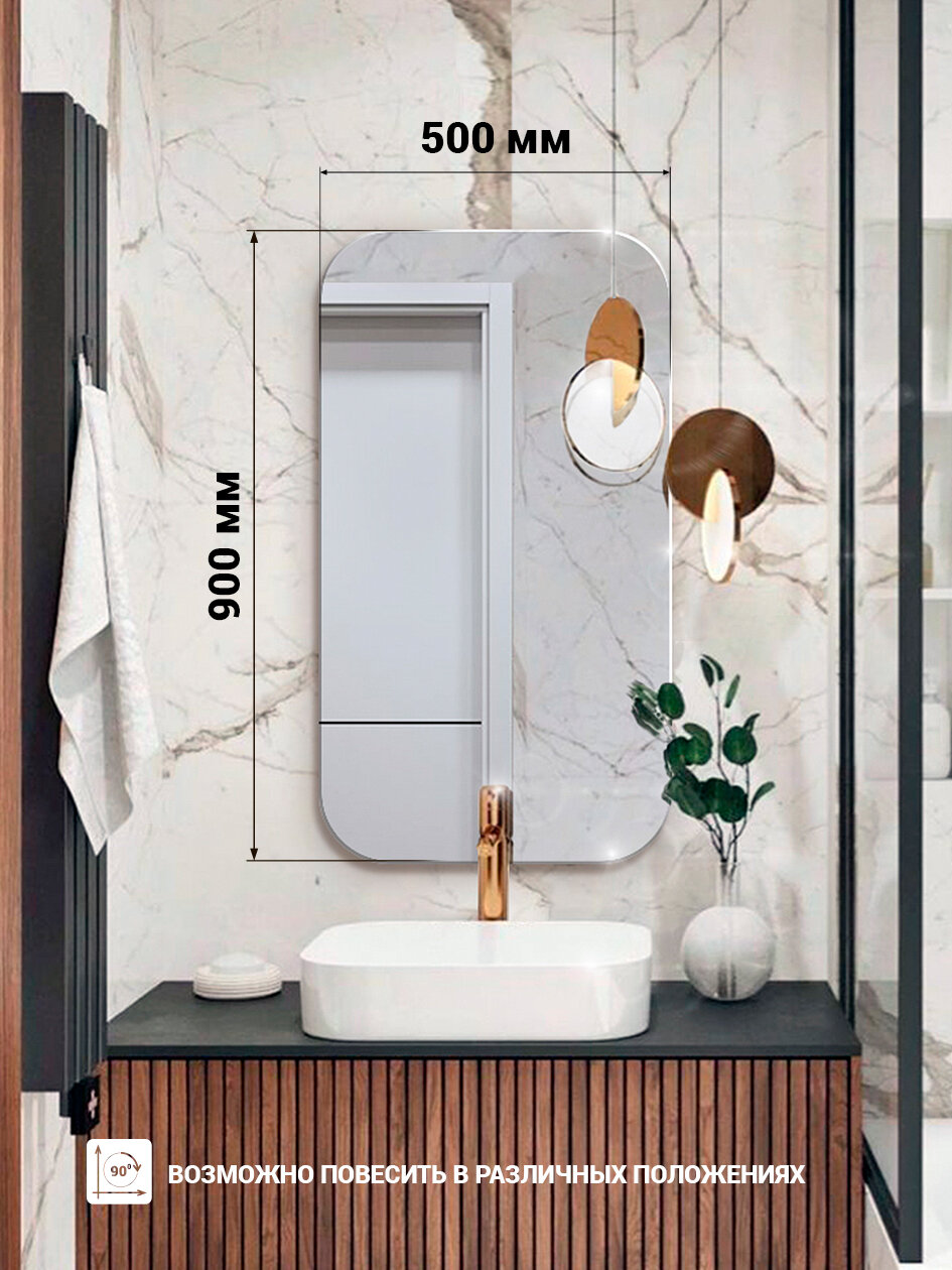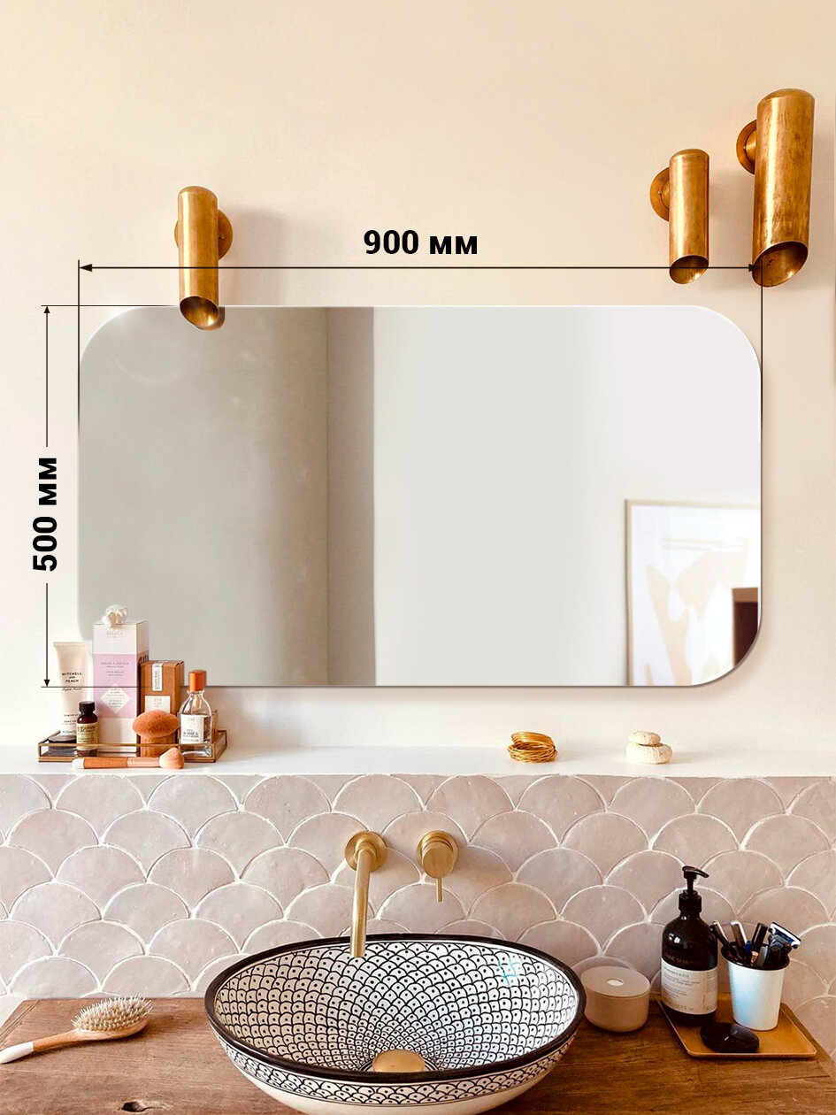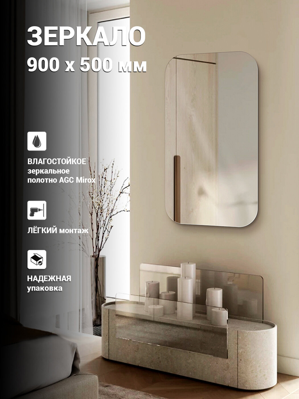Зеркало бренда"Дом Стекла21" настенное, прямоугольное, в ванную "Раста" 90х50 см интересное: