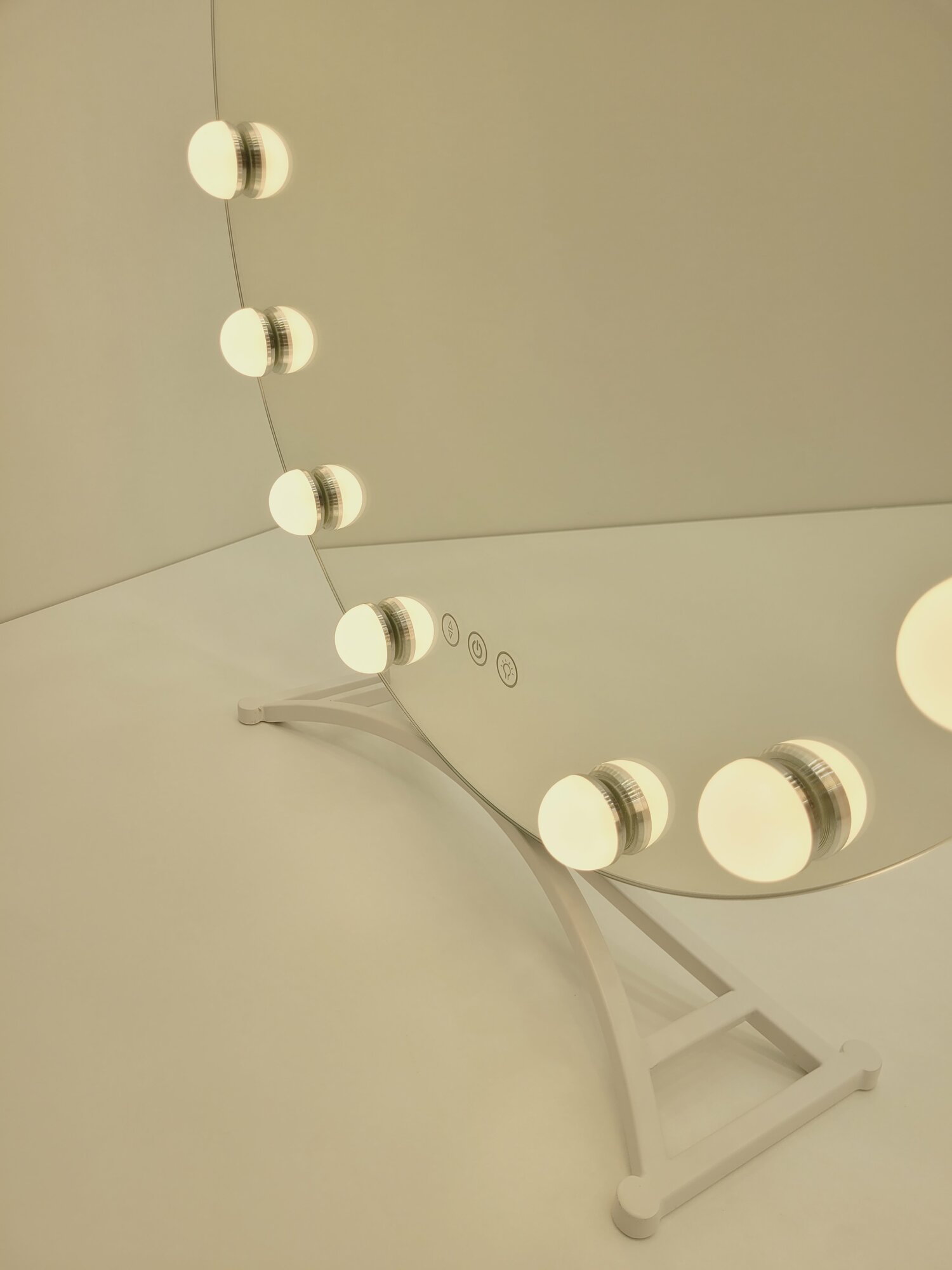 Купить Настольное интерьерное зеркало с подсветкой круглое на подставке со встроенными лампами