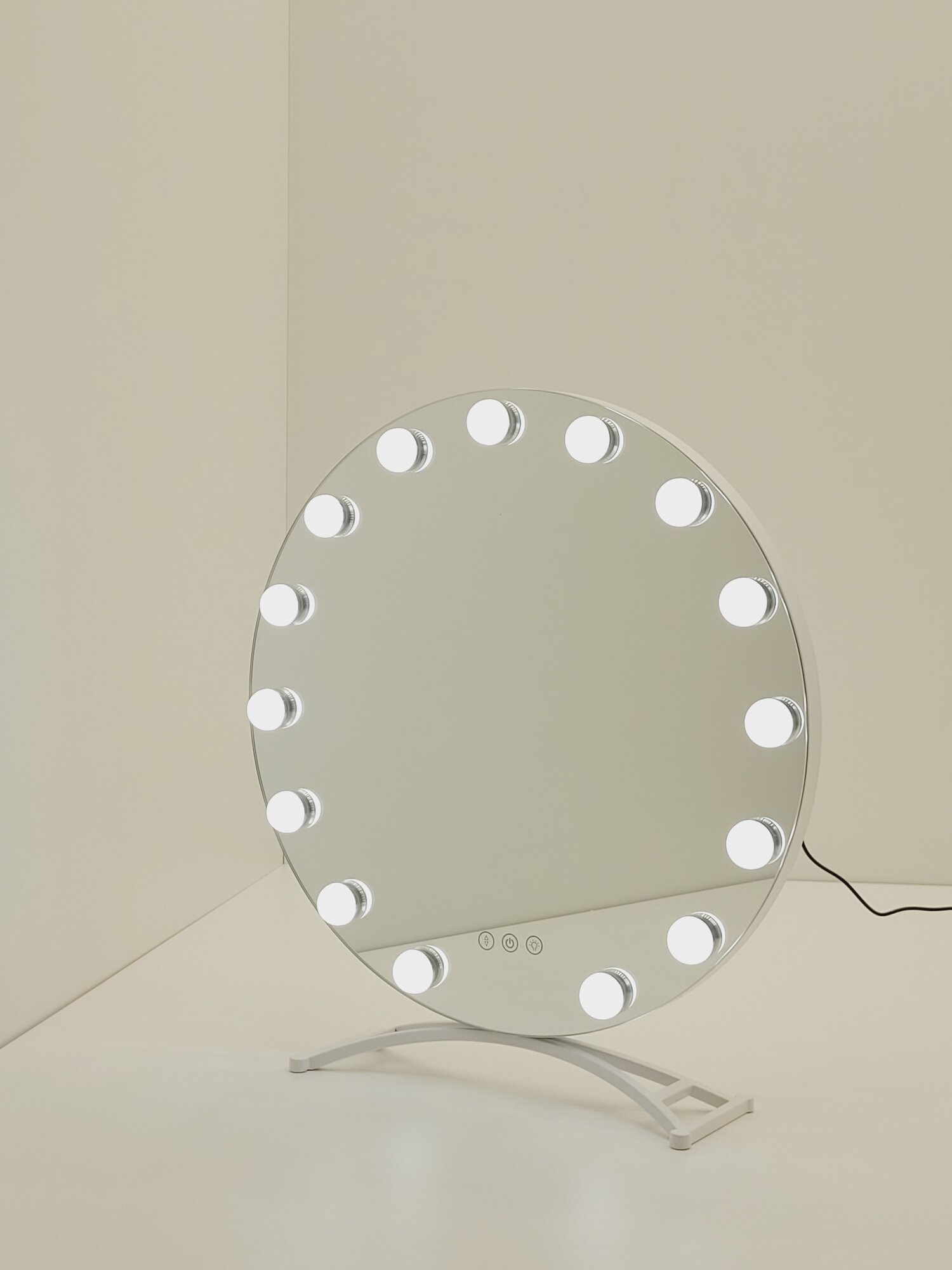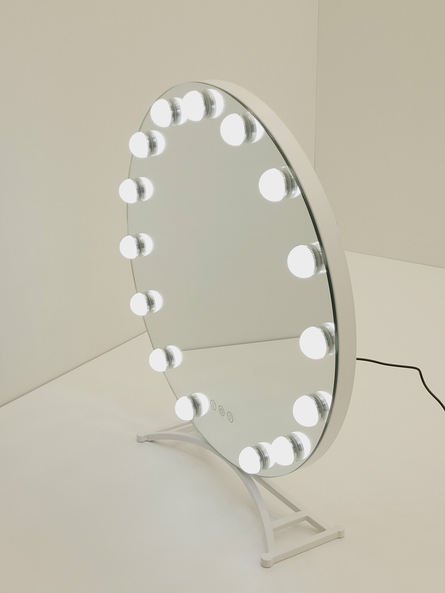 Настольное интерьерное зеркало с подсветкой круглое со встроенными лампами