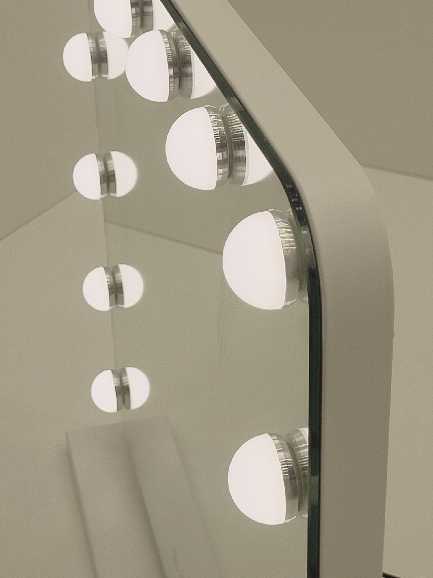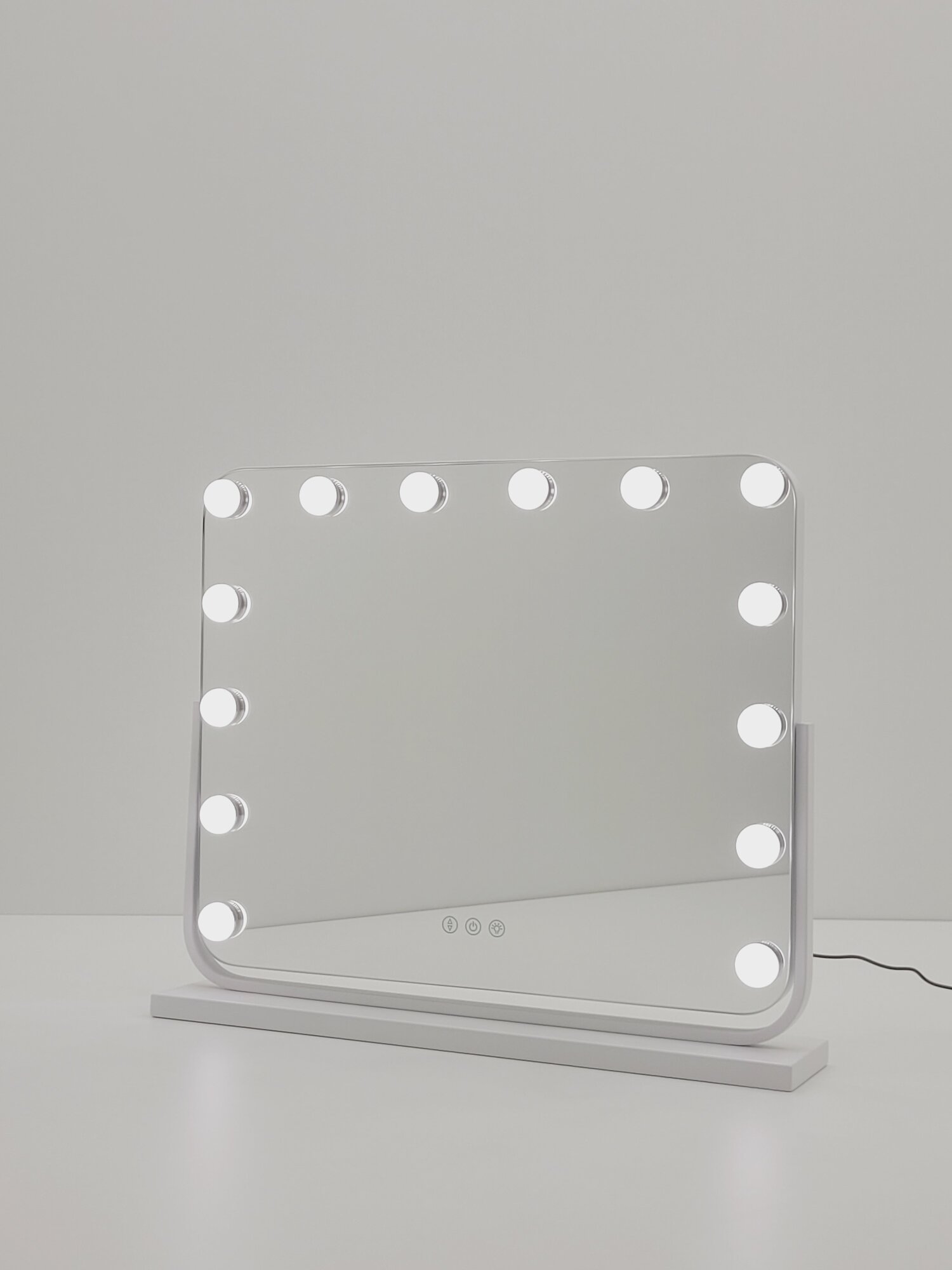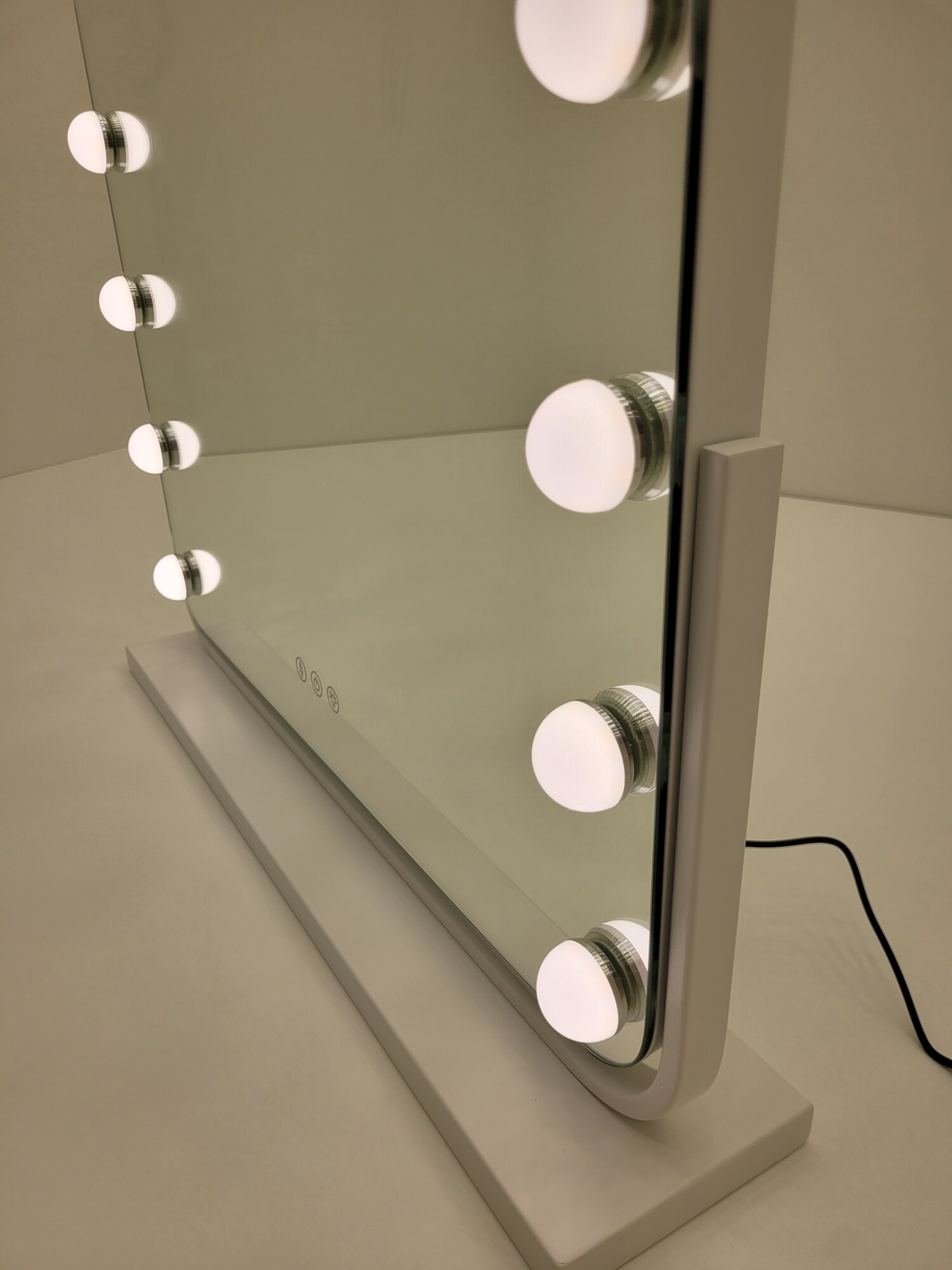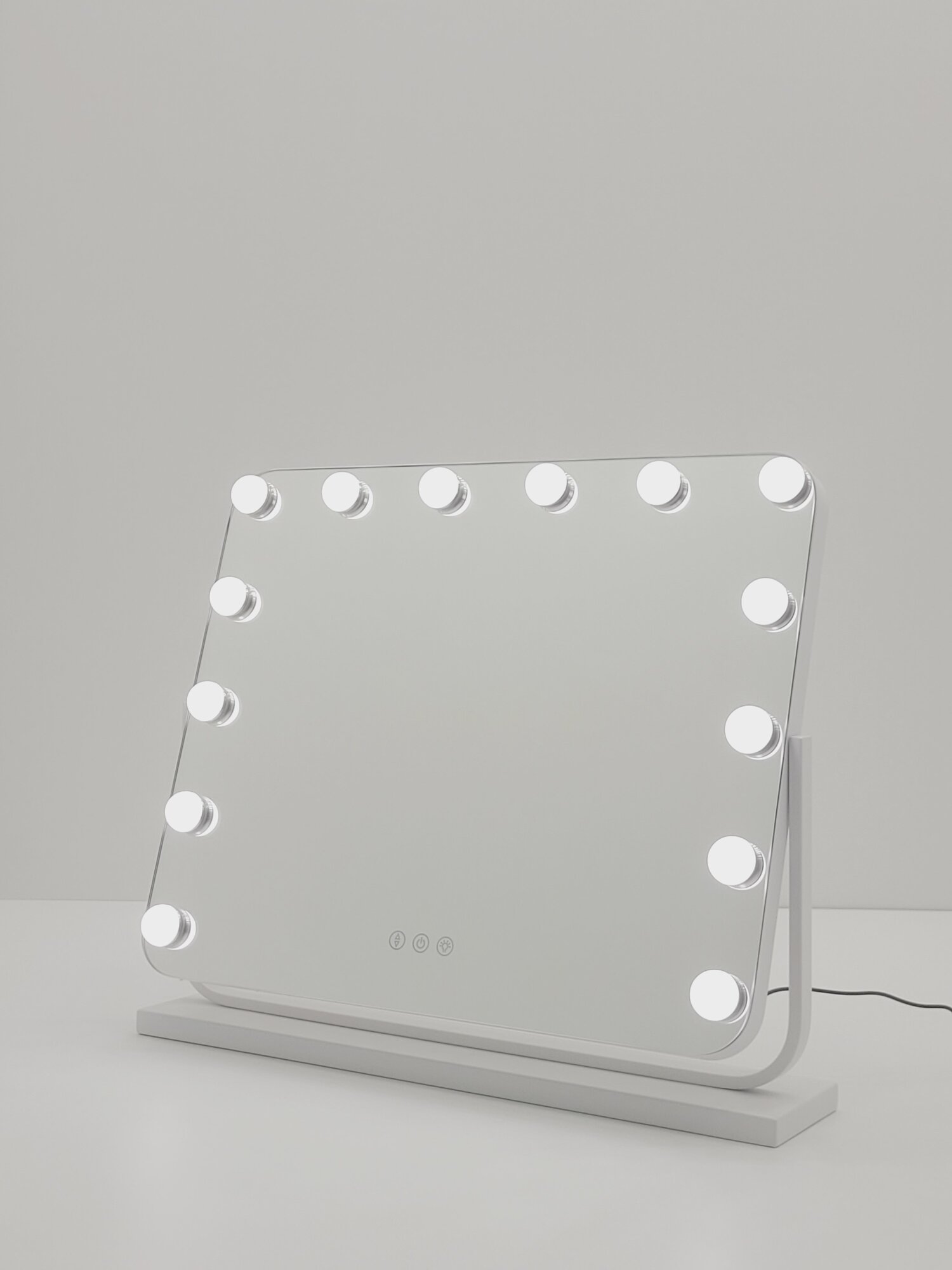 Настольное интерьерное зеркало с подсветкой прямоугольное со встроенными лампами интересное: