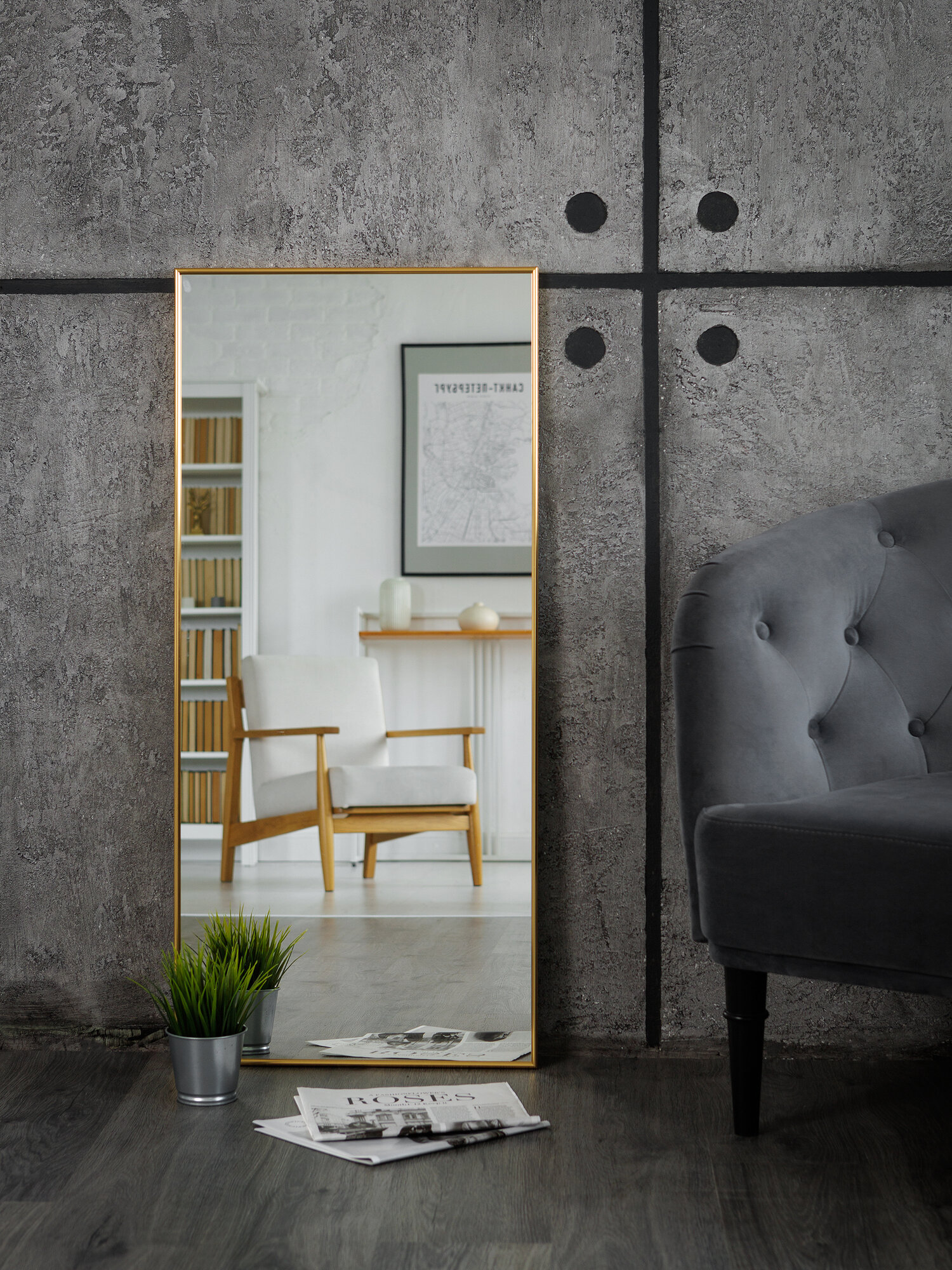 Зеркало настенное в алюминиевой раме ЗеркалоОК 50х70 золотое интересное: