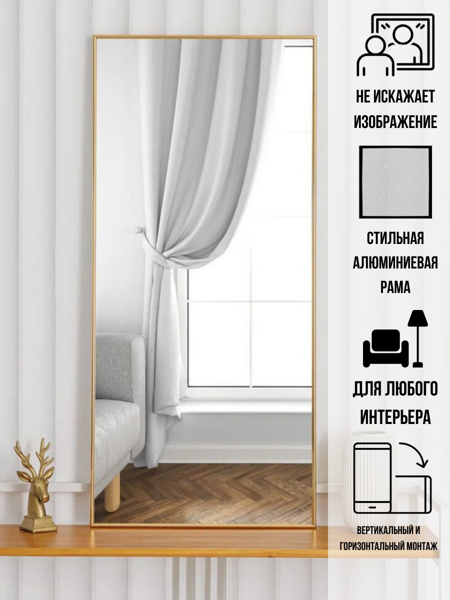 Зеркало настенное в алюминиевой раме ЗеркалоОК 50х110 золотое