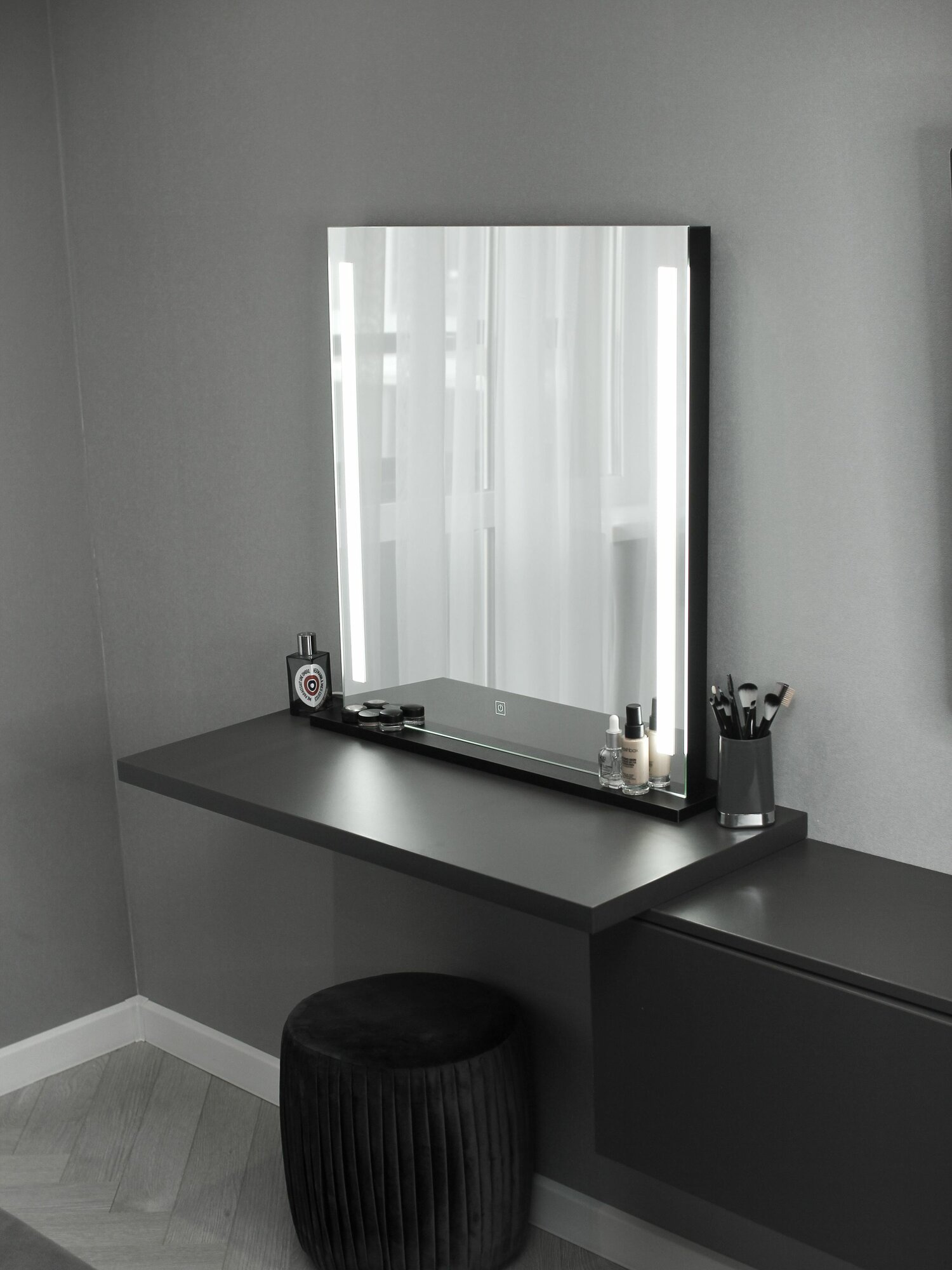 Купить Зеркало макияжное на подставке с LED подсветкой, выключатель-сенсор (черный)