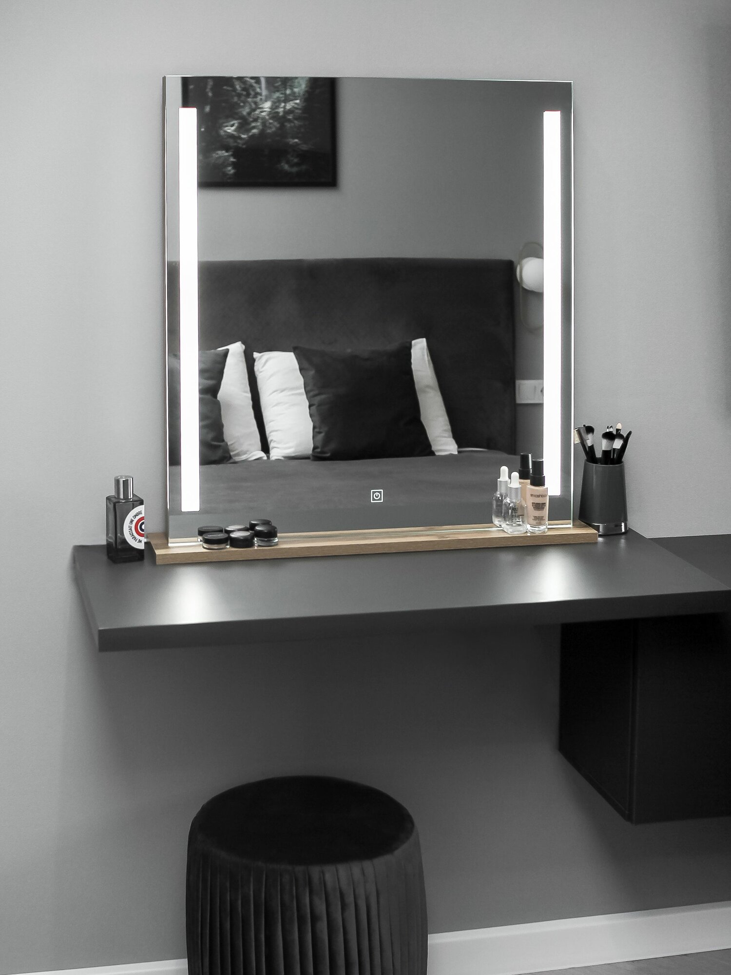 Зеркало макияжное на подставке, выключатель-сенсор LED II ДУБ вотан интересное: