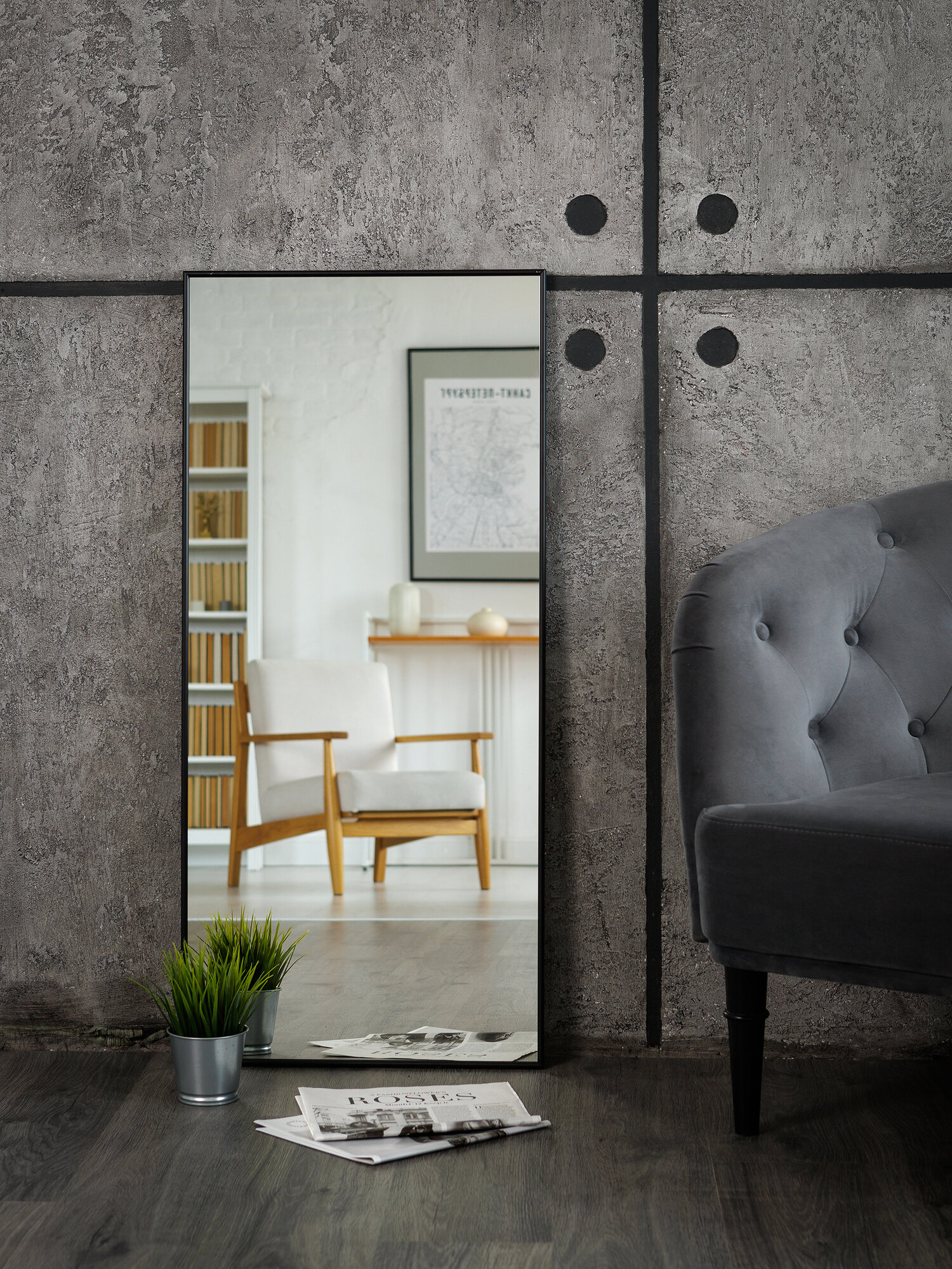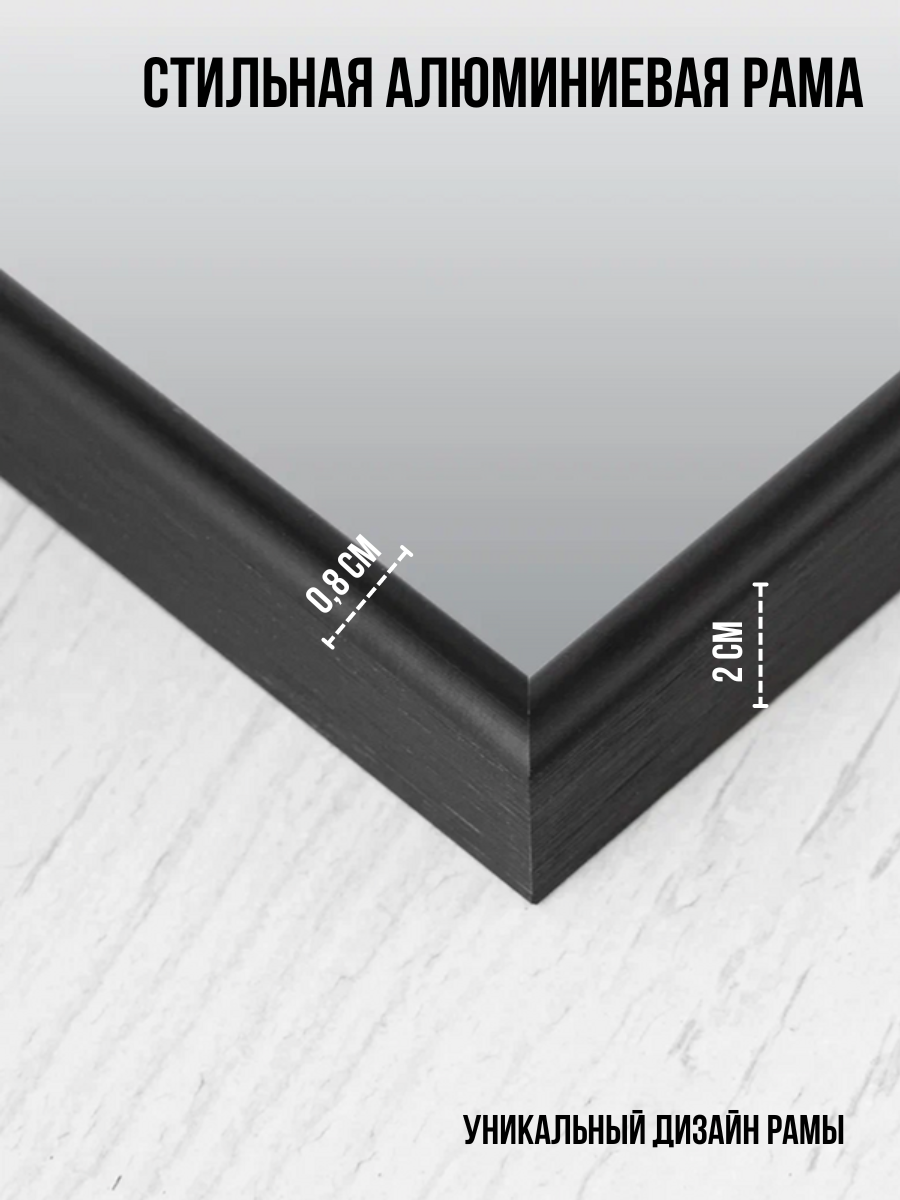Зеркало настенное "ЗеркалоОК" 50x90, черное, в алюминиевой раме