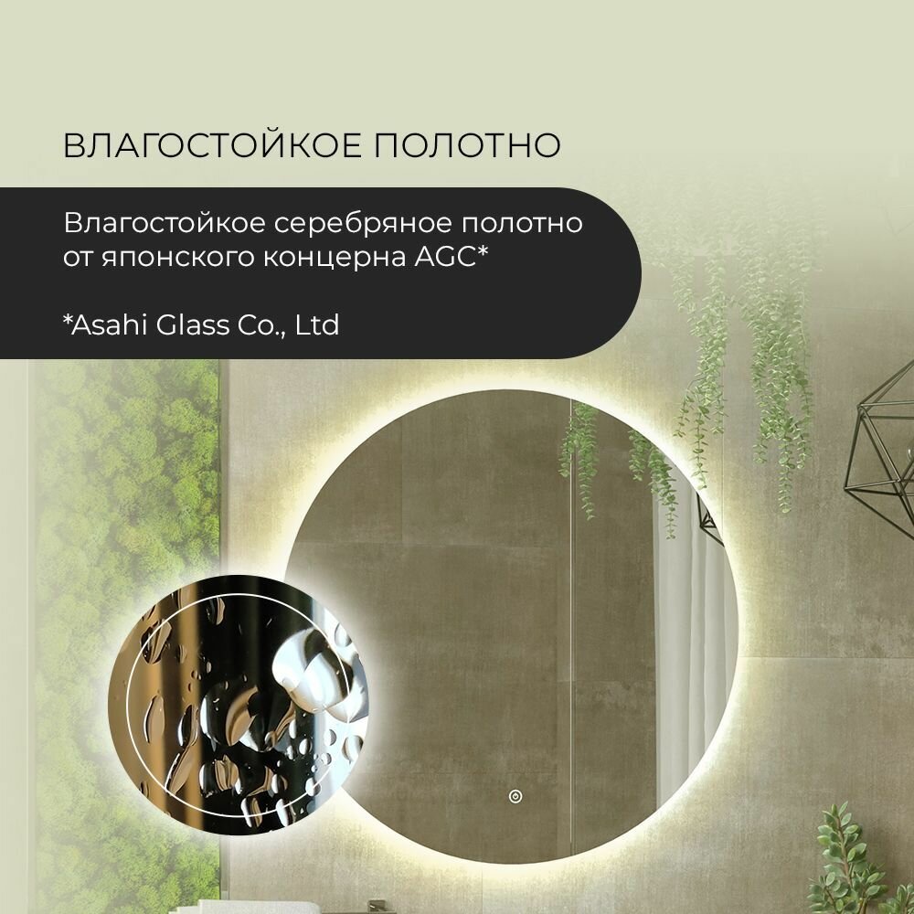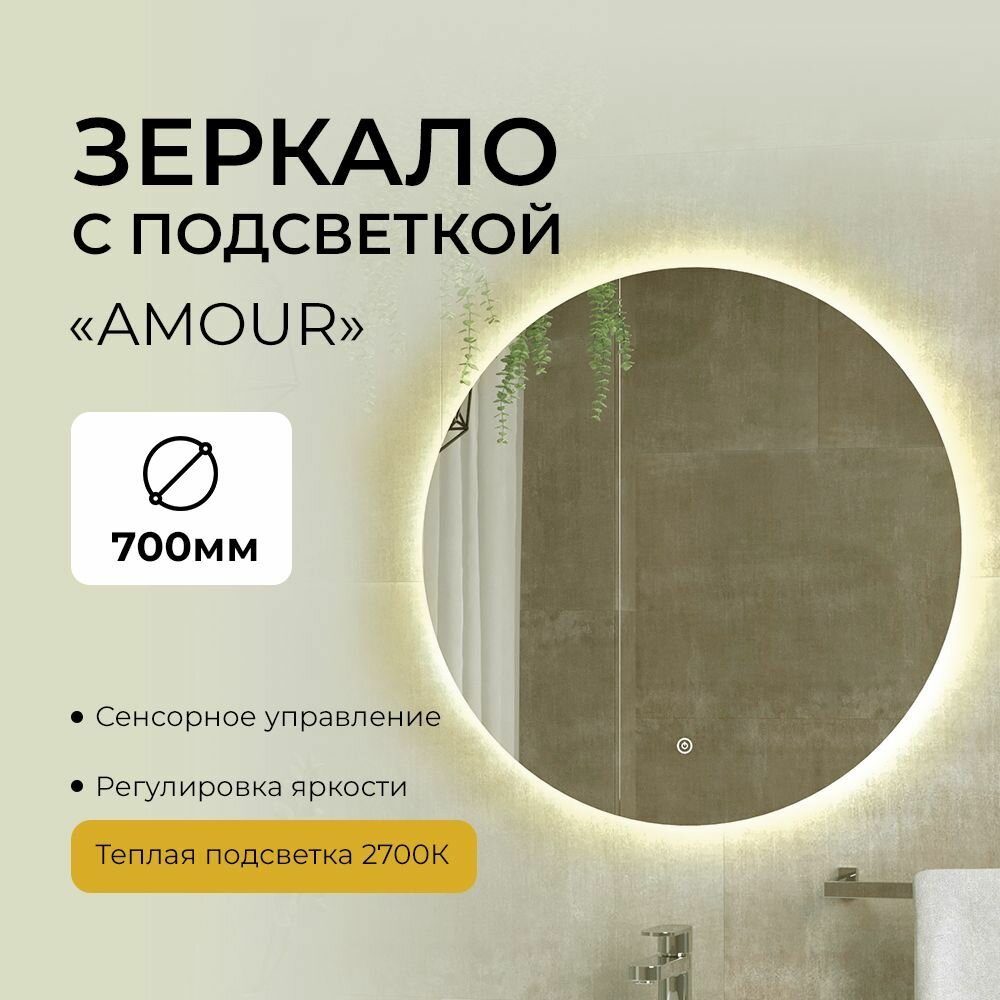 Купить Зеркало с теплой подсветкой в ванную комнату настенное сенсорное круглое "AMOURE" D70