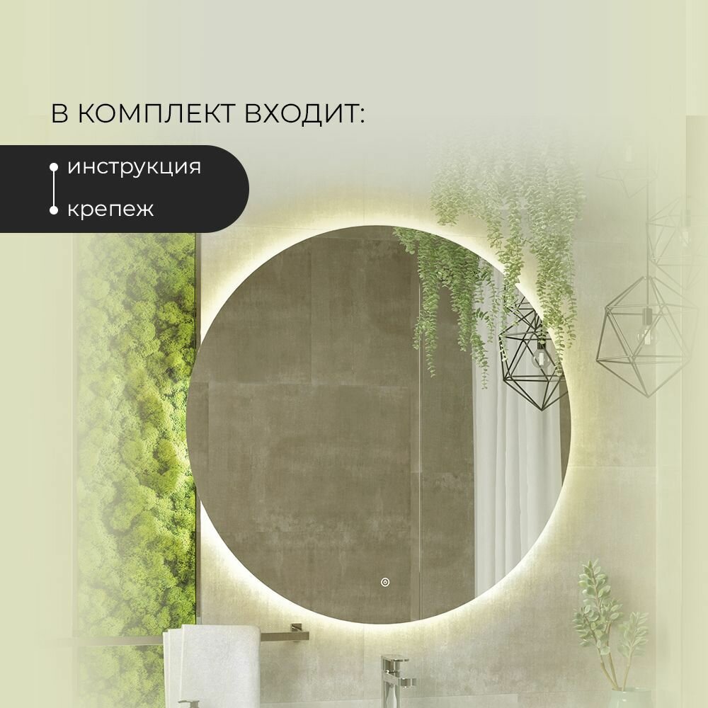 Зеркало с теплой подсветкой в ванную комнату настенное сенсорное круглое "AMOURE" D70 интересное: