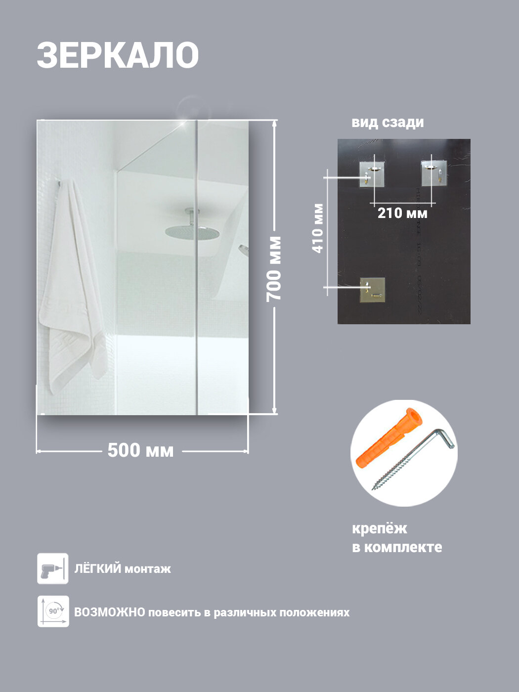 Зеркало Дом Стекла 21 "Пронт", 70x50 см, прямоугольное, без рамы, серебристое интересное: