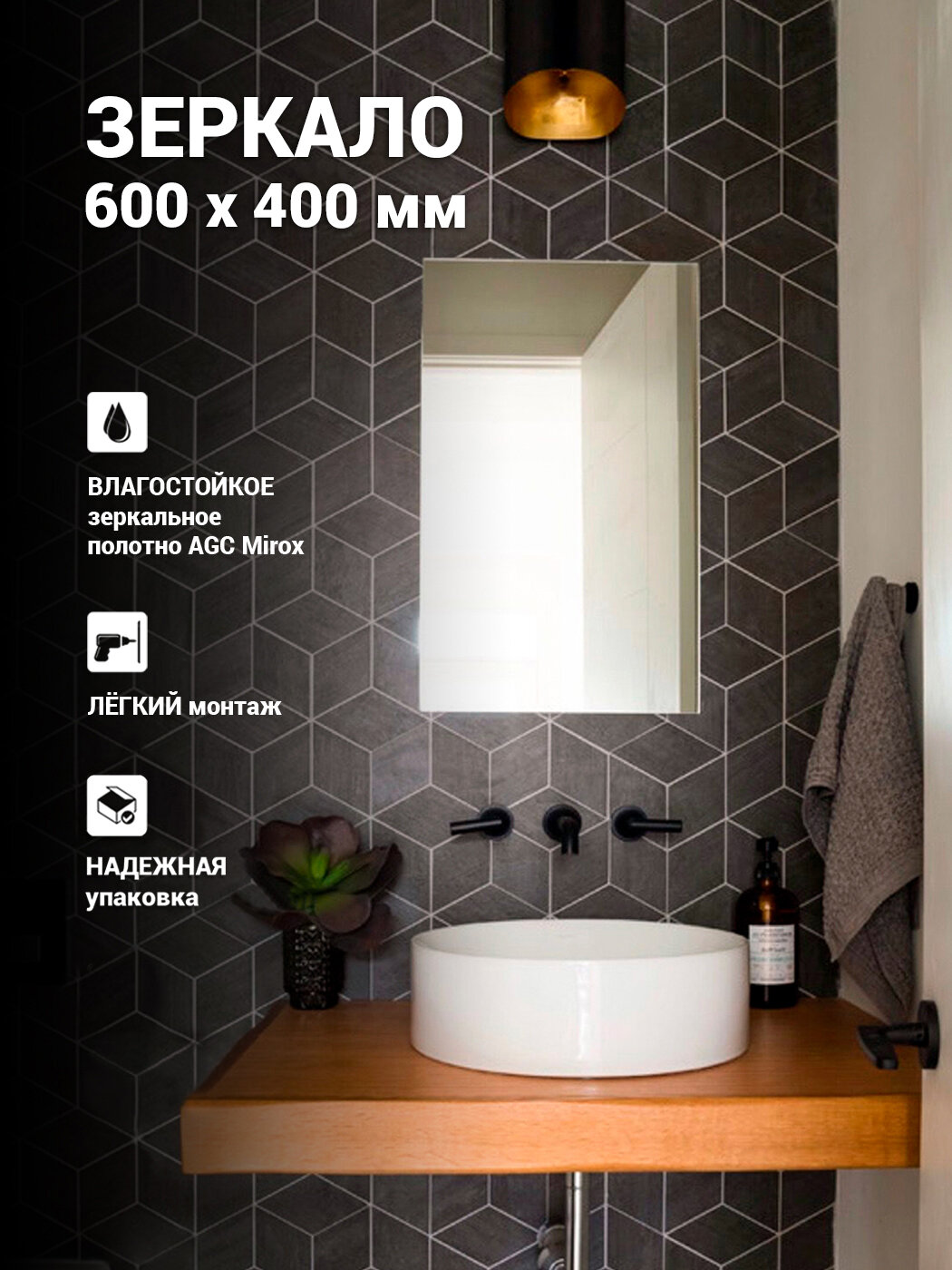 Зеркало Дом Стекла Пронт, настенное, прямоугольное, влагостойкое, 40x60 см интересное: