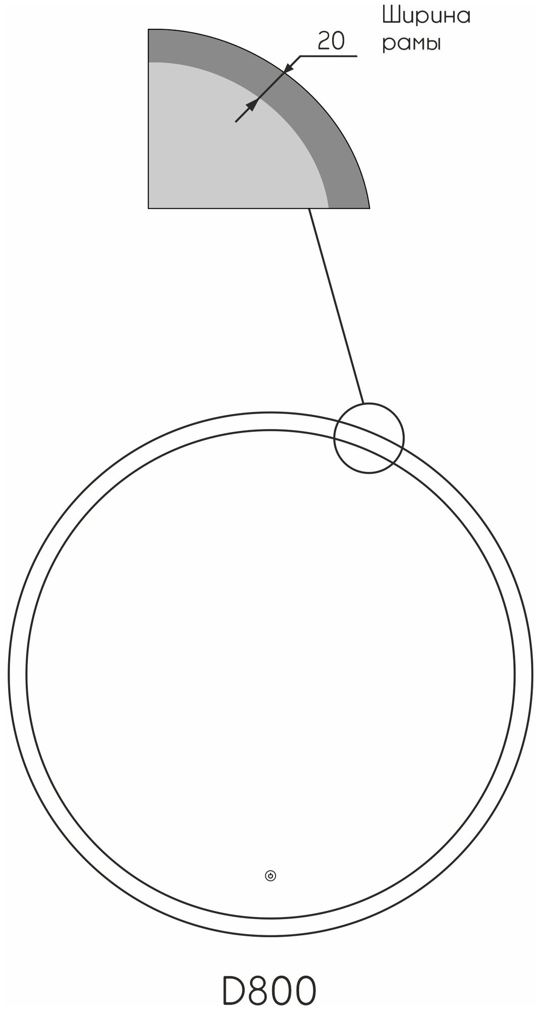 Зеркало в черной раме D80 для ванной с тёплой подсветкой, сенсор с диммером, класс защиты IP44 Max Mirrors