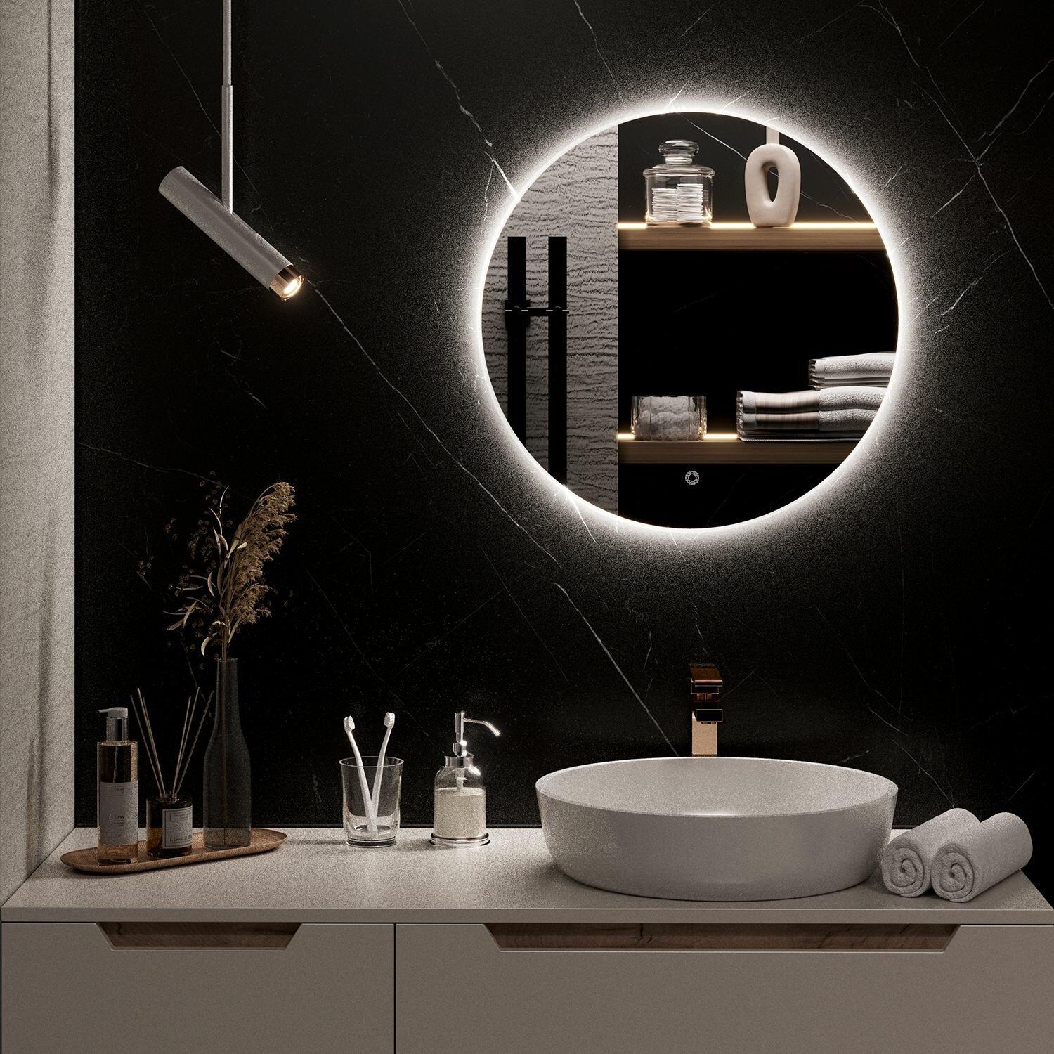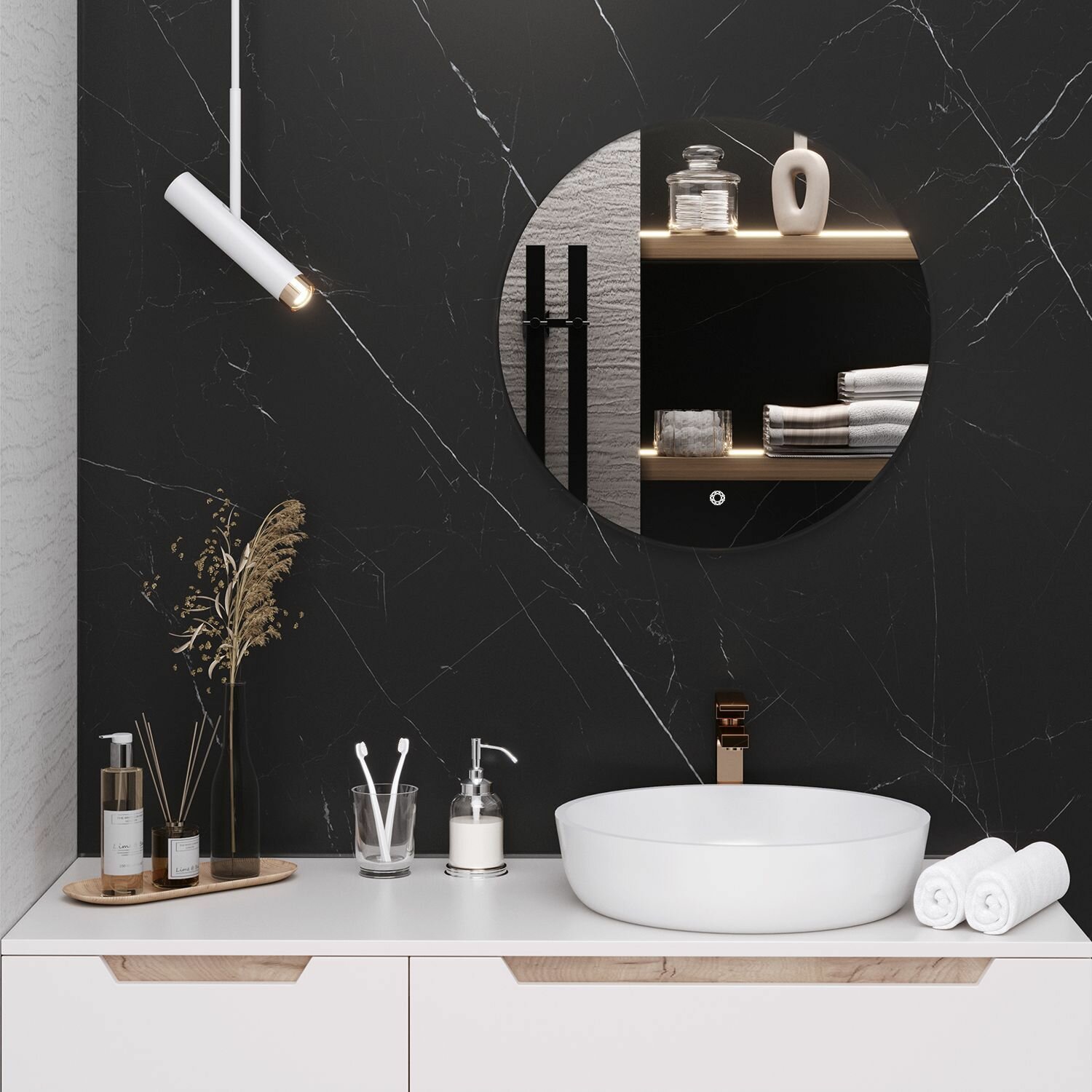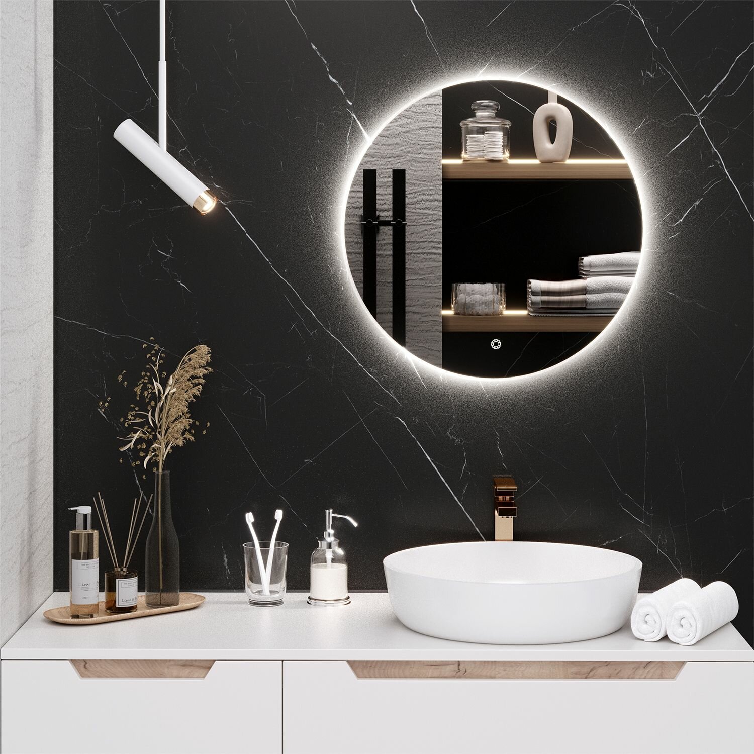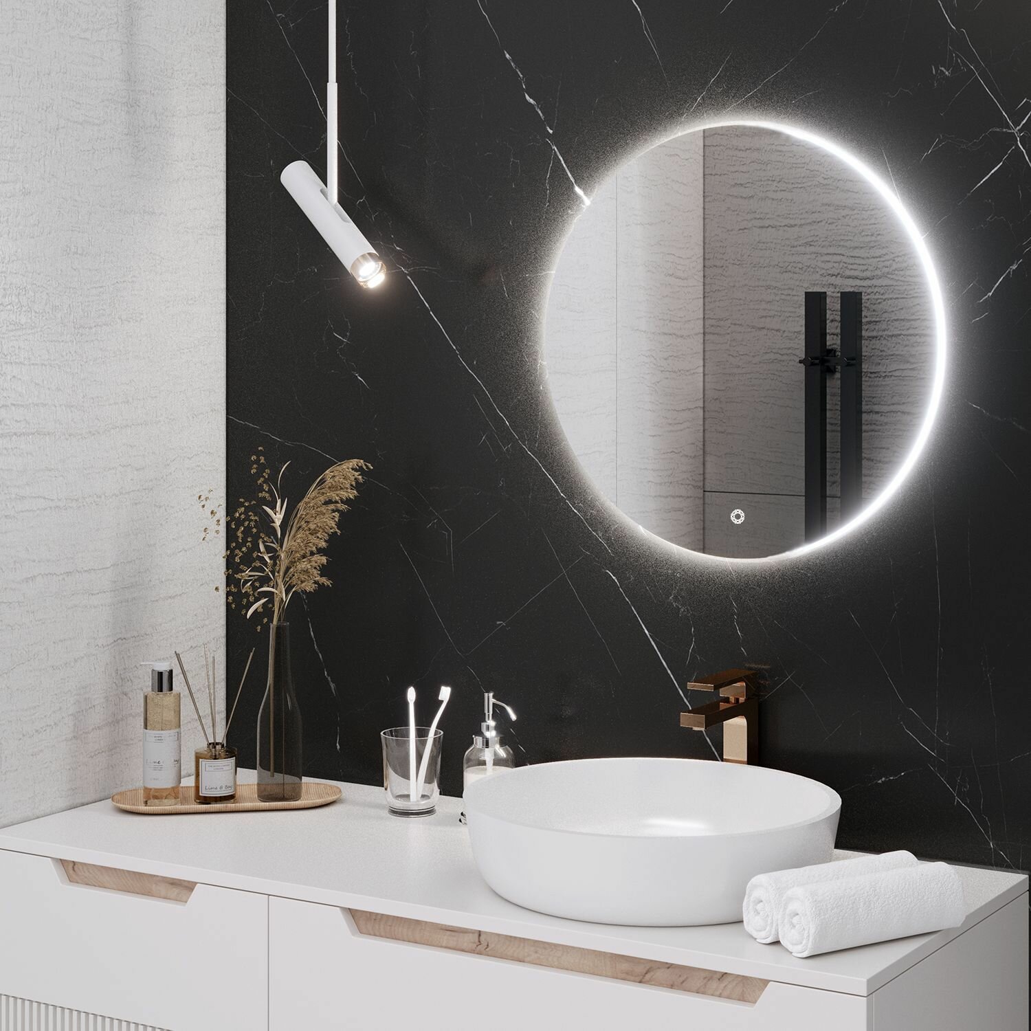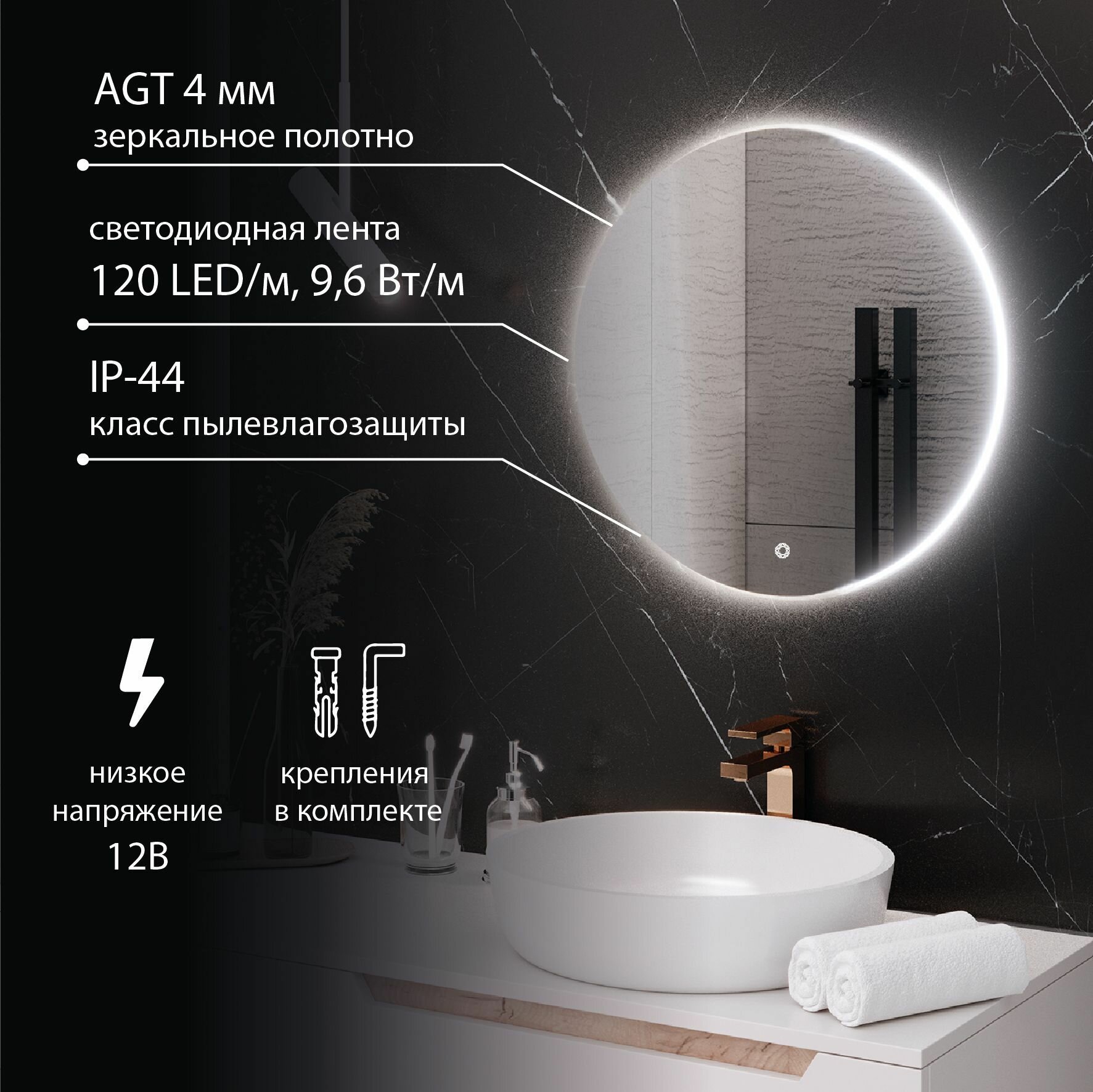 Зеркало круглое MILAN 65 см с подсветкой , сенсорный выключатель / AQUA DE MARCO