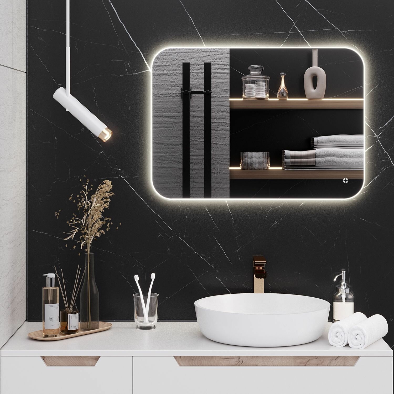 Зеркало настенное MILAN 60х80 , 80х60 с подсветкой , сенсорный выключатель / AQUA DE MARCO