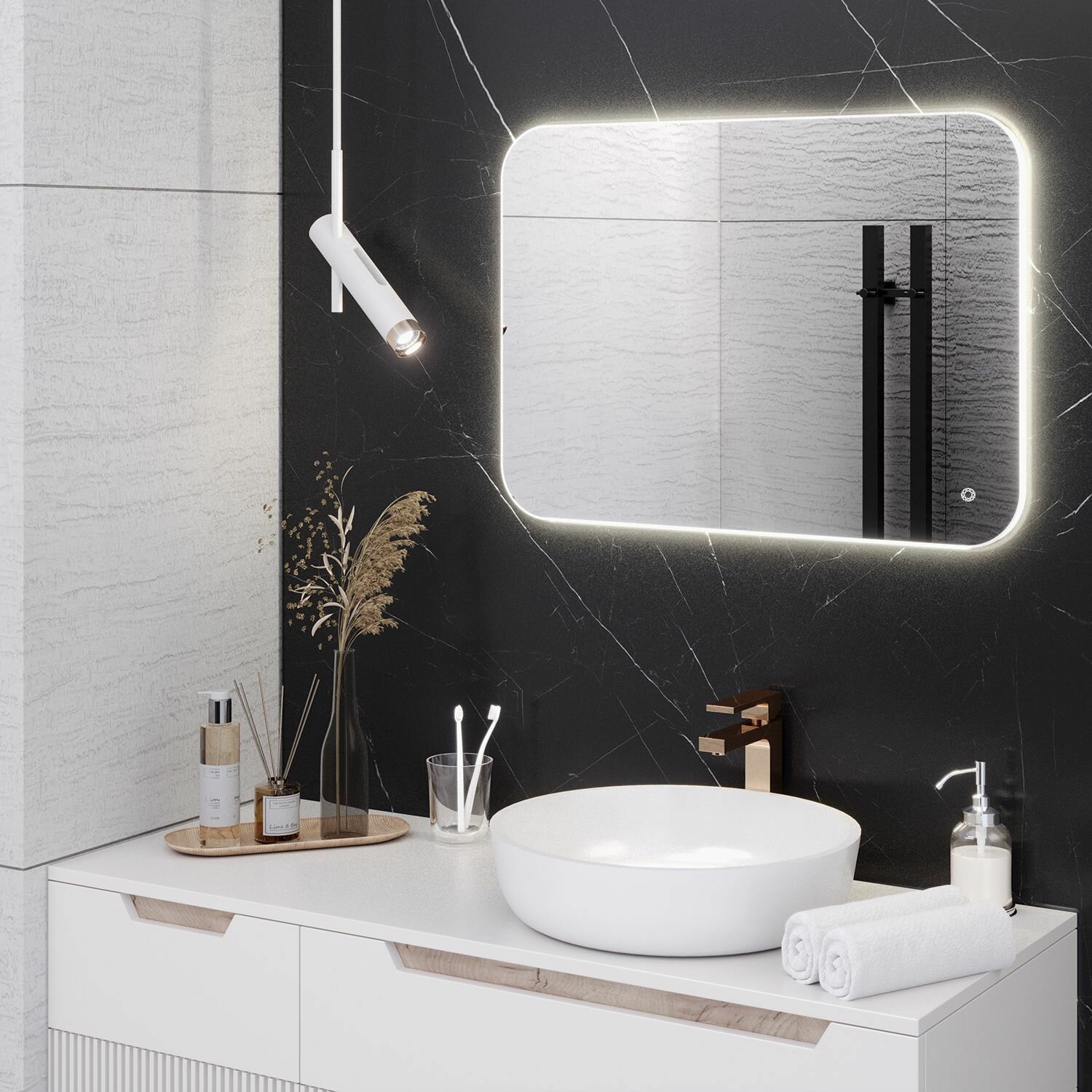 Зеркало настенное MILAN 80х100 , 100х80 с подсветкой , сенсорный выключатель / AQUA DE MARCO