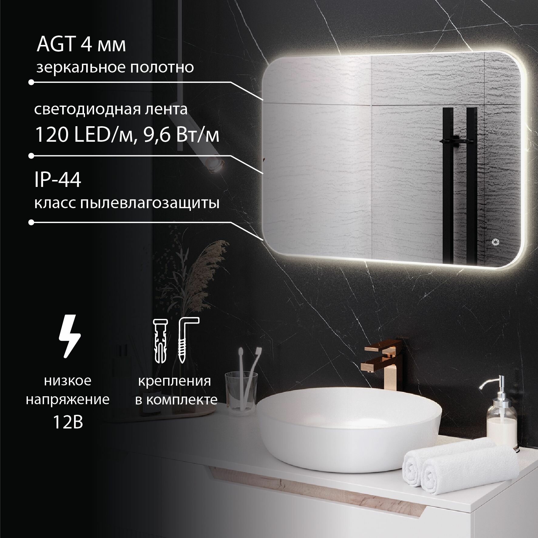 Зеркало настенное MILAN 50х60 , 60х50 с подсветкой , сенсорный выключатель / AQUA DE MARCO