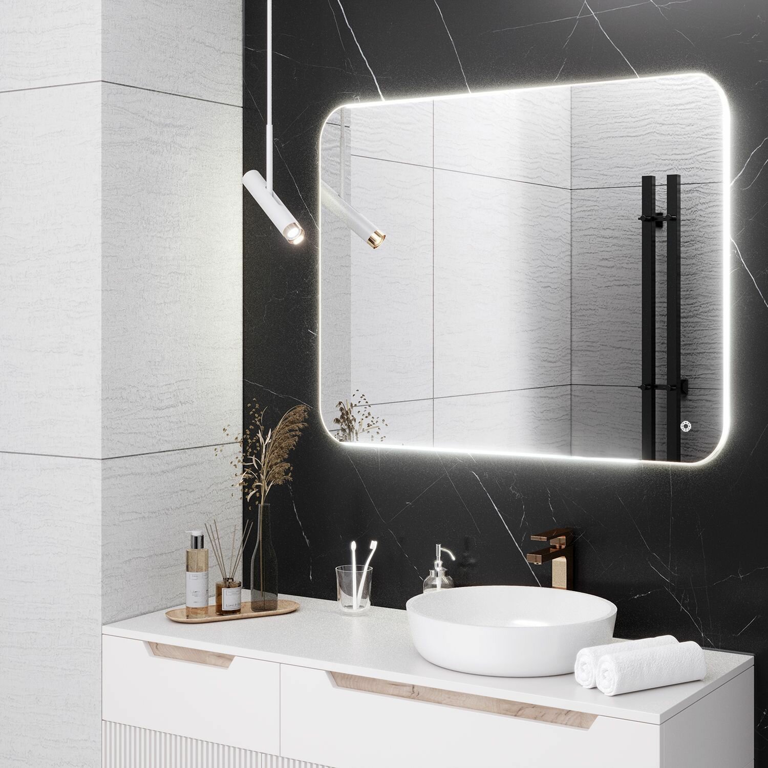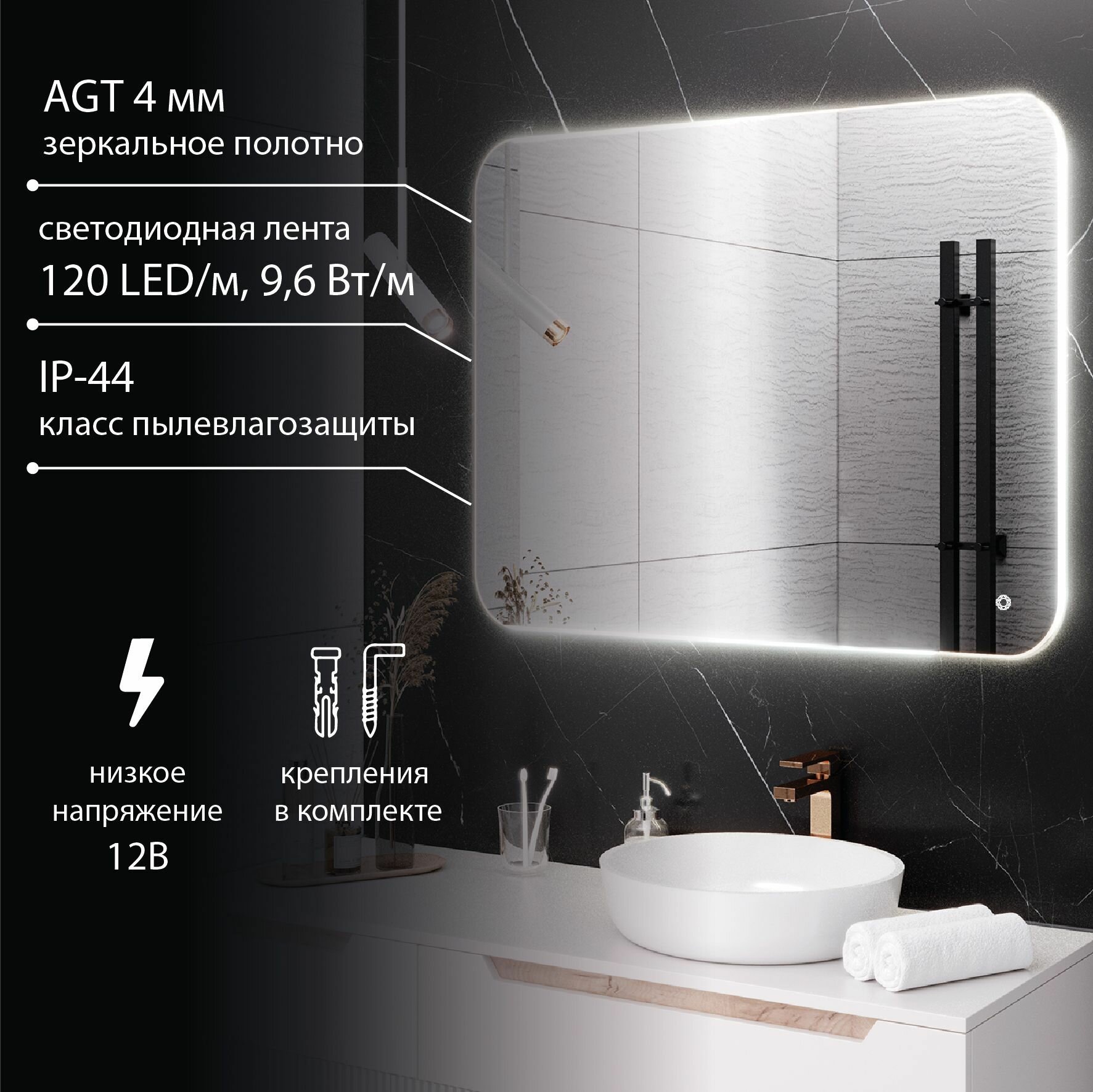 Зеркало настенное MILAN 60х80 , 80х60 с подсветкой , сенсорный выключатель / AQUA DE MARCO
