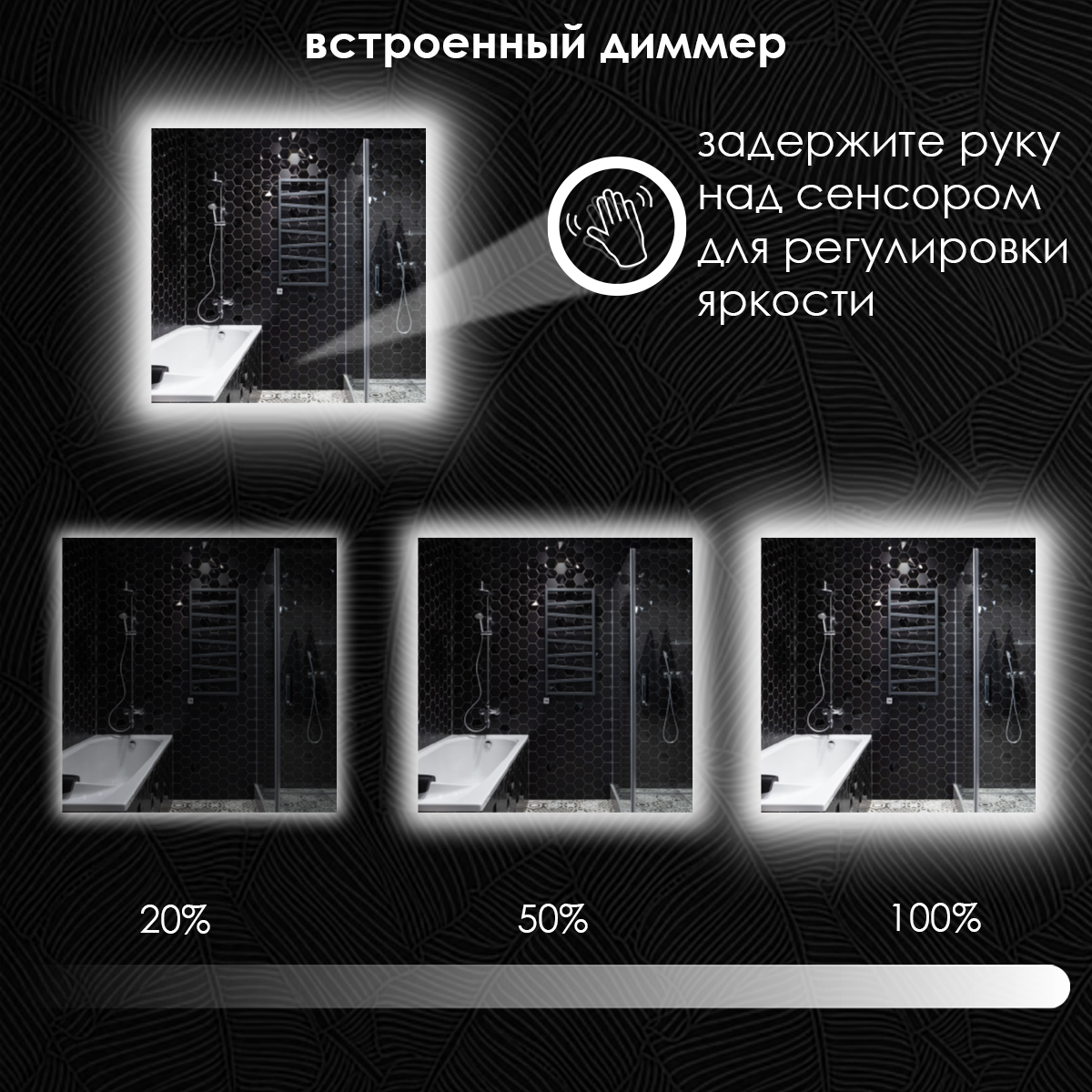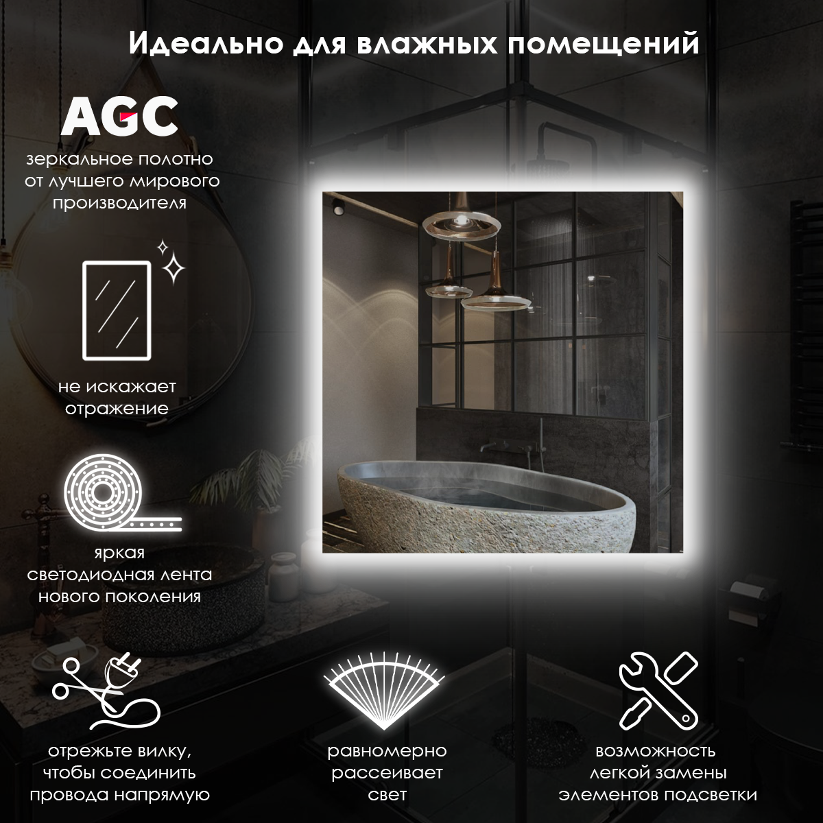 СохранитьЗеркало для ванной квадратное, контурная подсветка, подогрев, управление взмахом руки, 80х80 см. интересное: