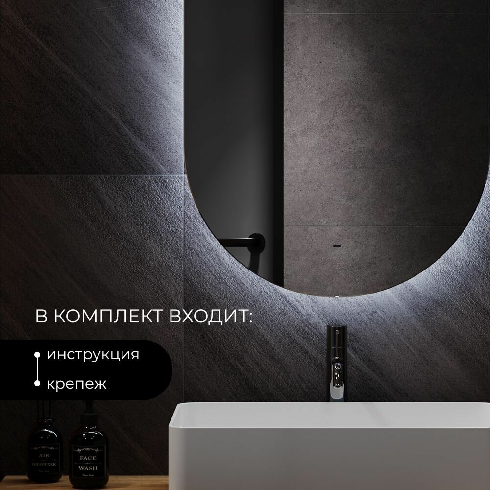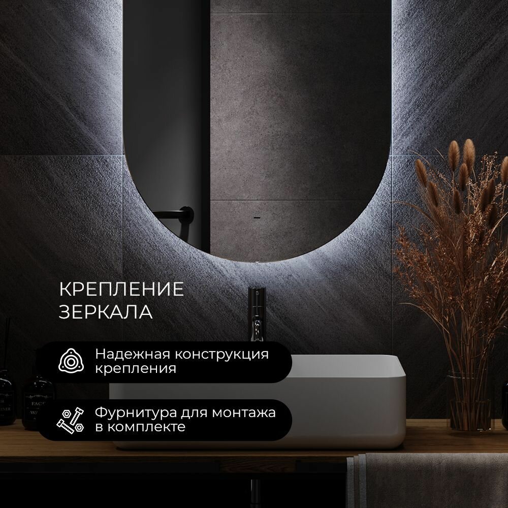Зеркало настенное для ванной КерамаМане 70*100 см с холодной подсветкой 6000 К с сенсорной кнопкой