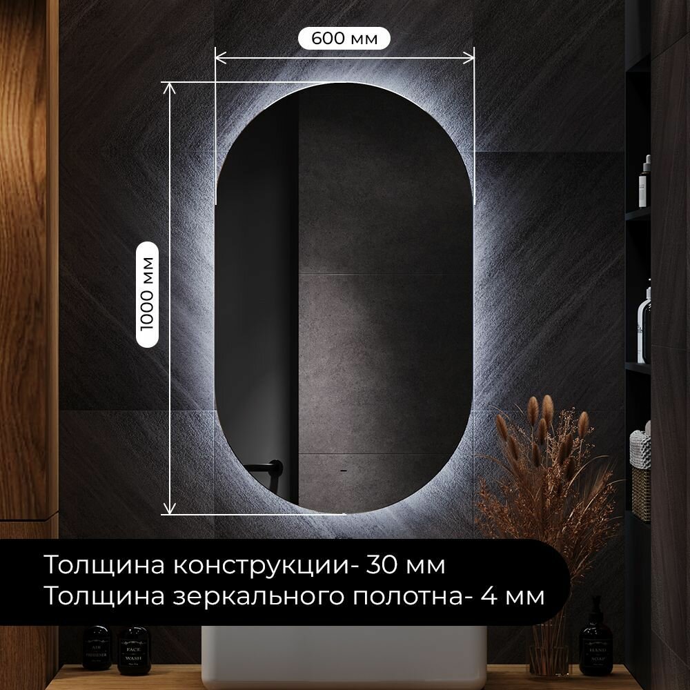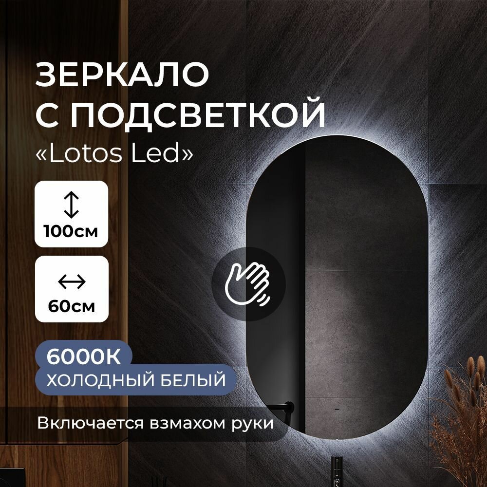 Зеркало с холодной подсветкой в ванную комнату настенное "Lotos Led" 60х100 см интересное: