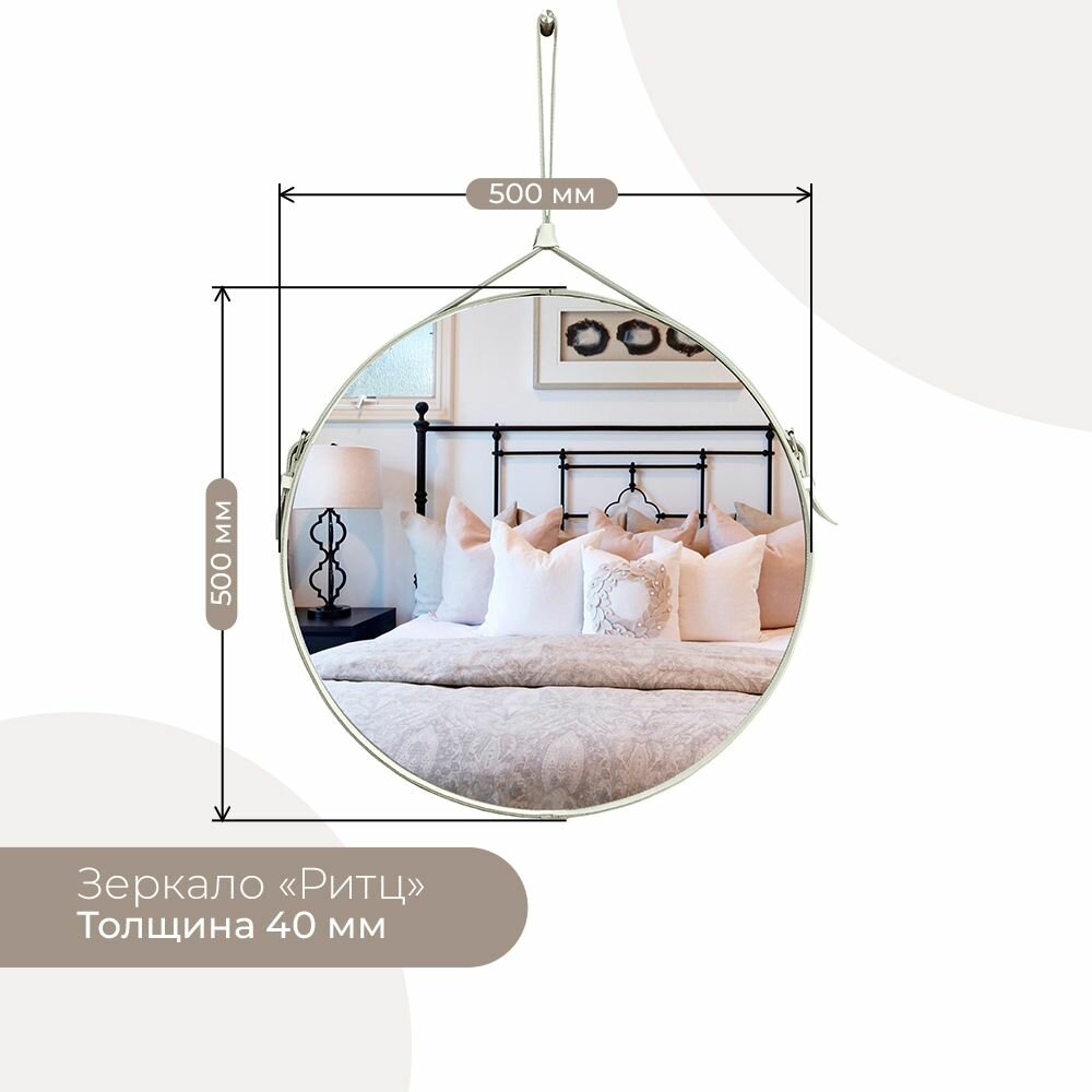 Зеркало настенное для прихожей, гостиной, спальни в раме из кожи "Ритц" круглое 50см коричневый интересное: