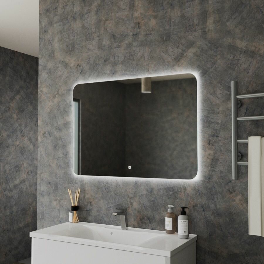 Зеркало настенное для ванной КерамаМане 70*100 см с холодной подсветкой 6000 К с сенсорной кнопкой