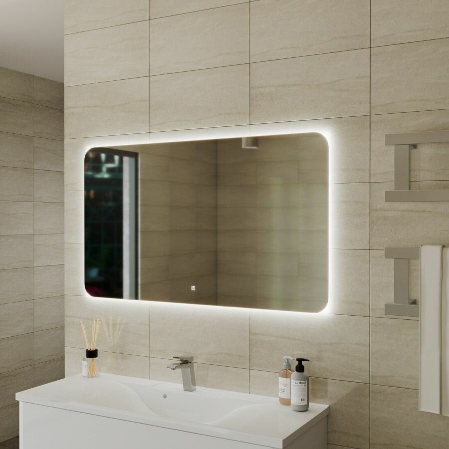 Зеркало настенное для ванной КерамаМане 70*100 см с холодной подсветкой 6000 К с сенсорной кнопкой