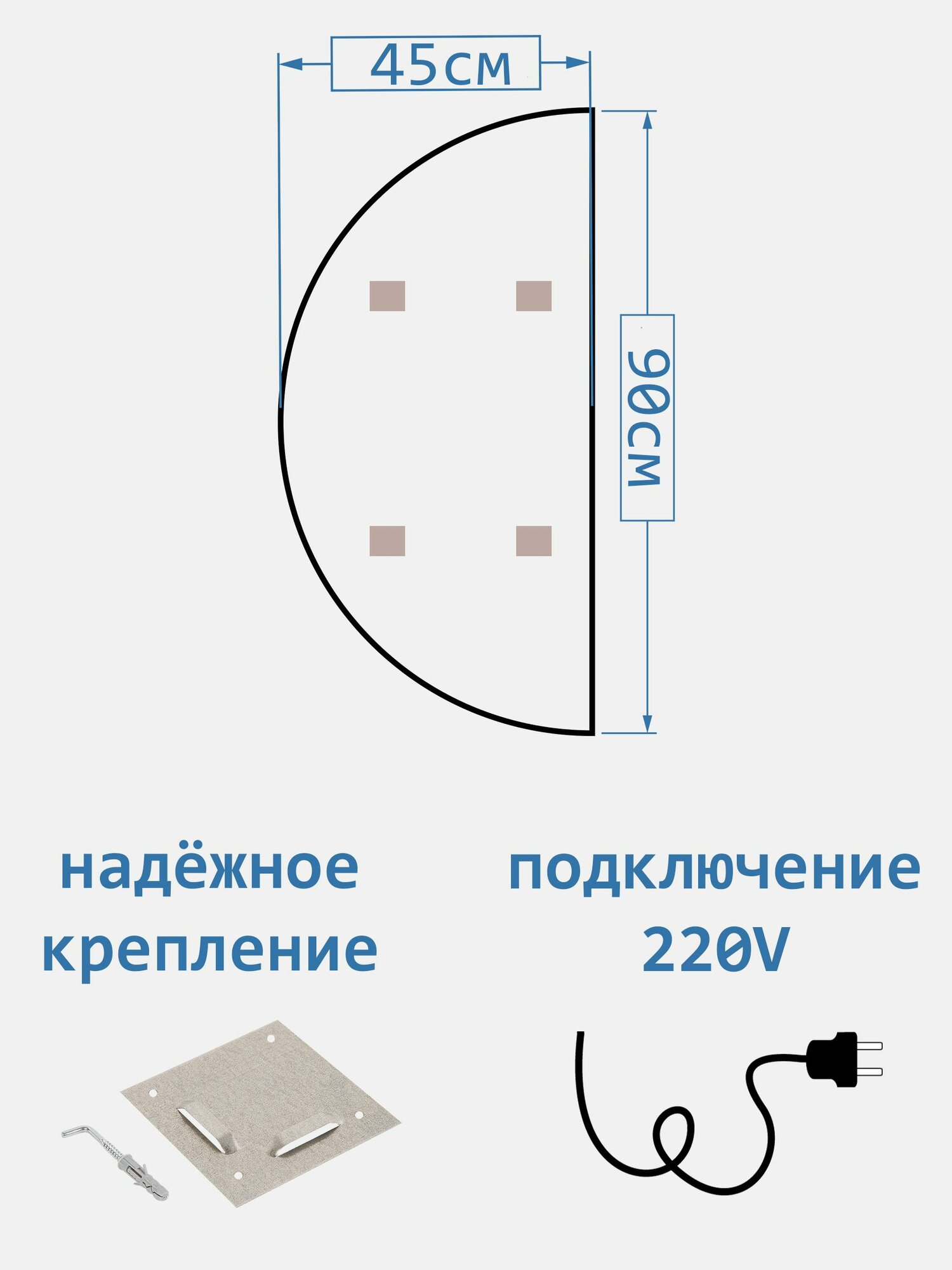 Зеркало настенное полукруглое с подсветкой 90х45см нейтральный свет интересное: