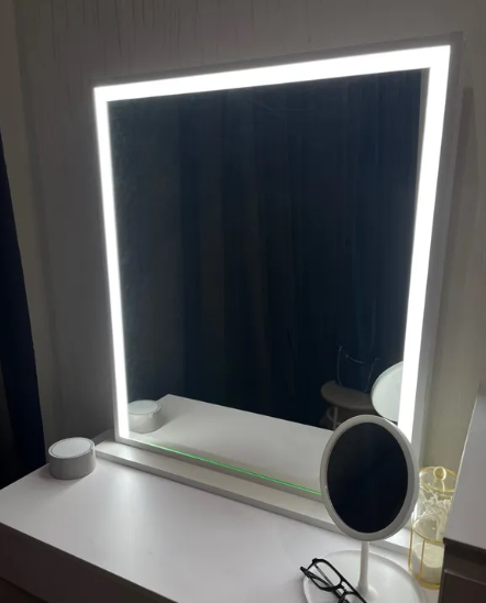 Гримерное зеркало с LED подсветкой, 80х70 на настольной подставке белое