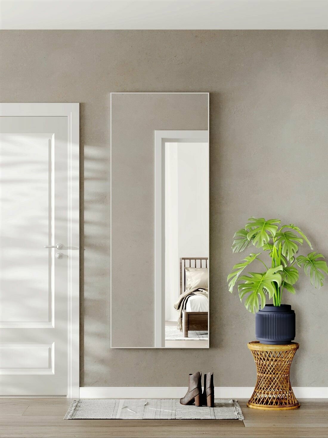 Настенные зеркала в спальню в полный рост TODA ALMA, 180х60 см. Белый
