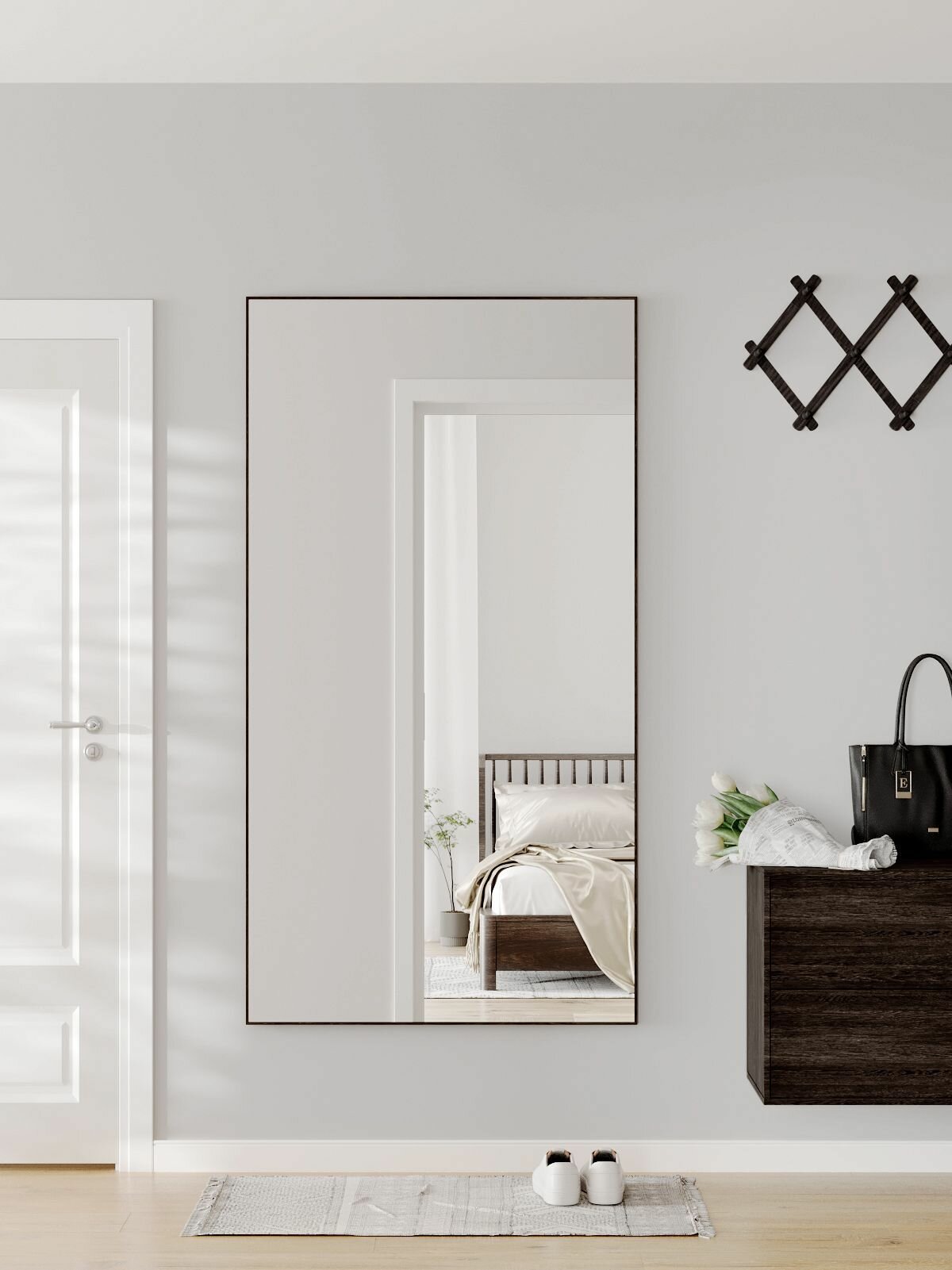 Настенные зеркала в прихожую в полный рост TODA ALMA, 200х70 см. Черное