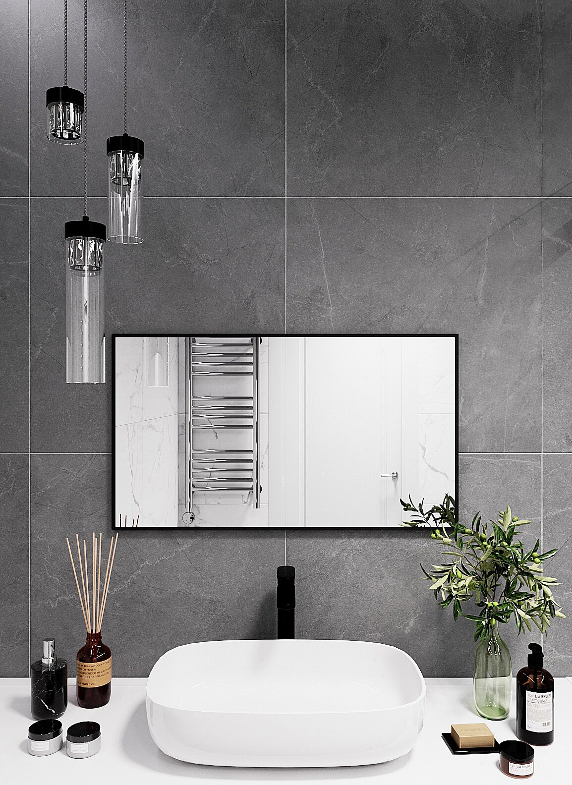 Купить Зеркало в алюминиевой раме настенное ONE MIRROR 80х40 см. Черное