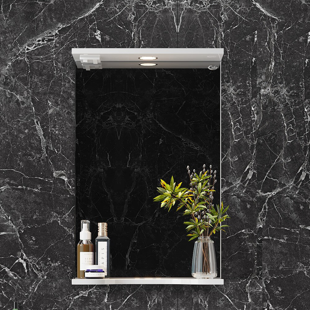 Зеркало для ванной Onika Коралл 55 навесное белое с подсветкой / 55x17x70 см