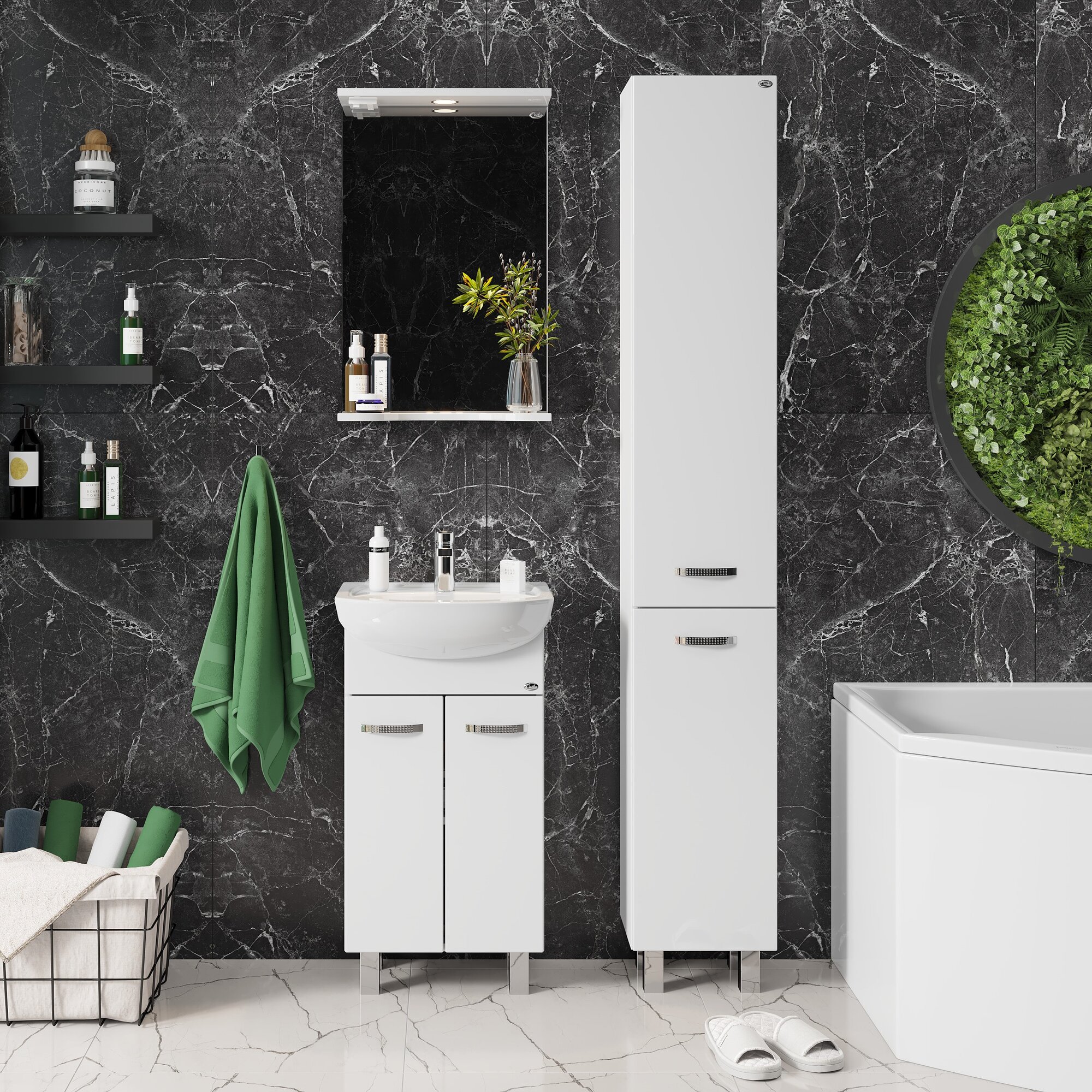 Зеркало для ванной Onika Коралл 50 навесное белое с подсветкой / 50x17x70 см