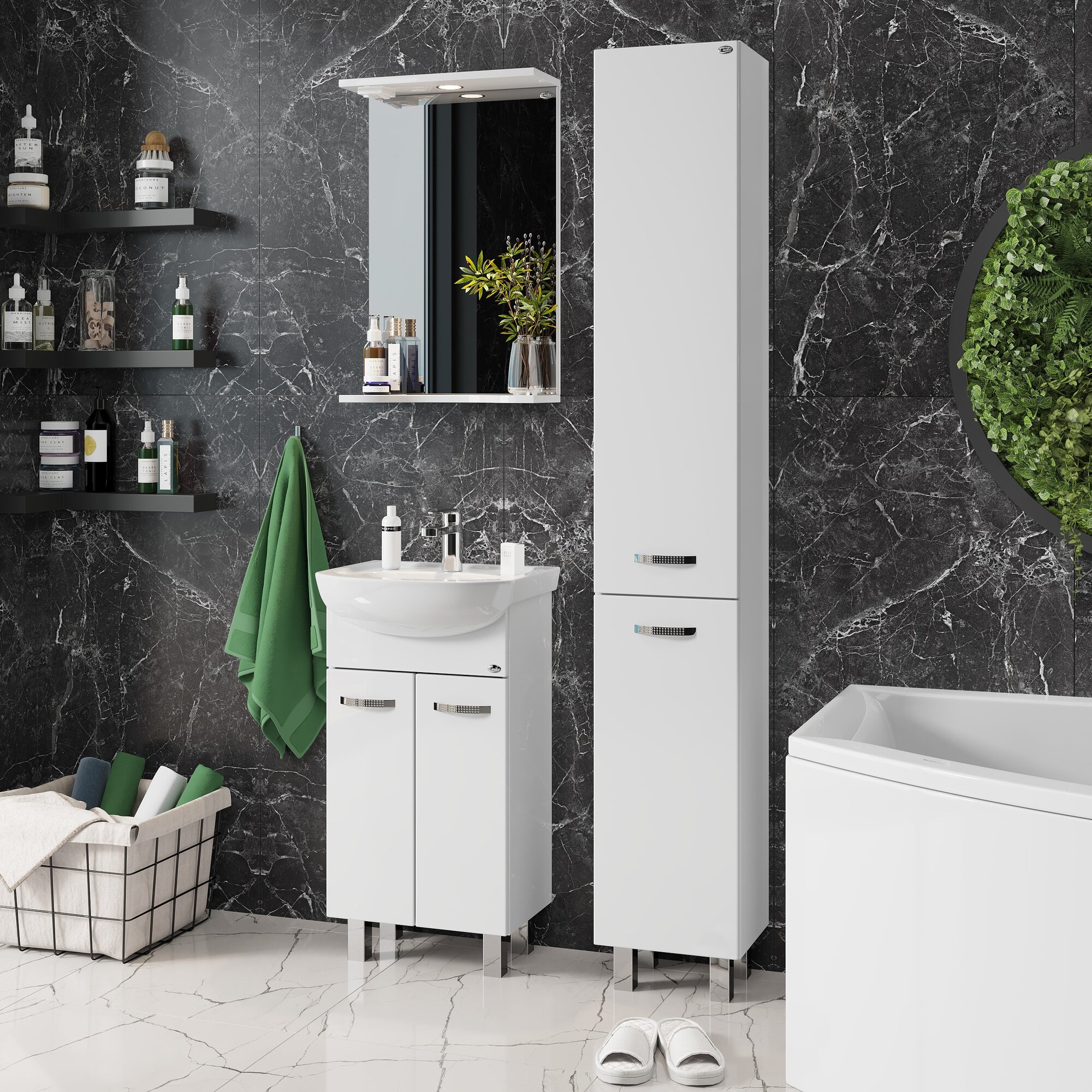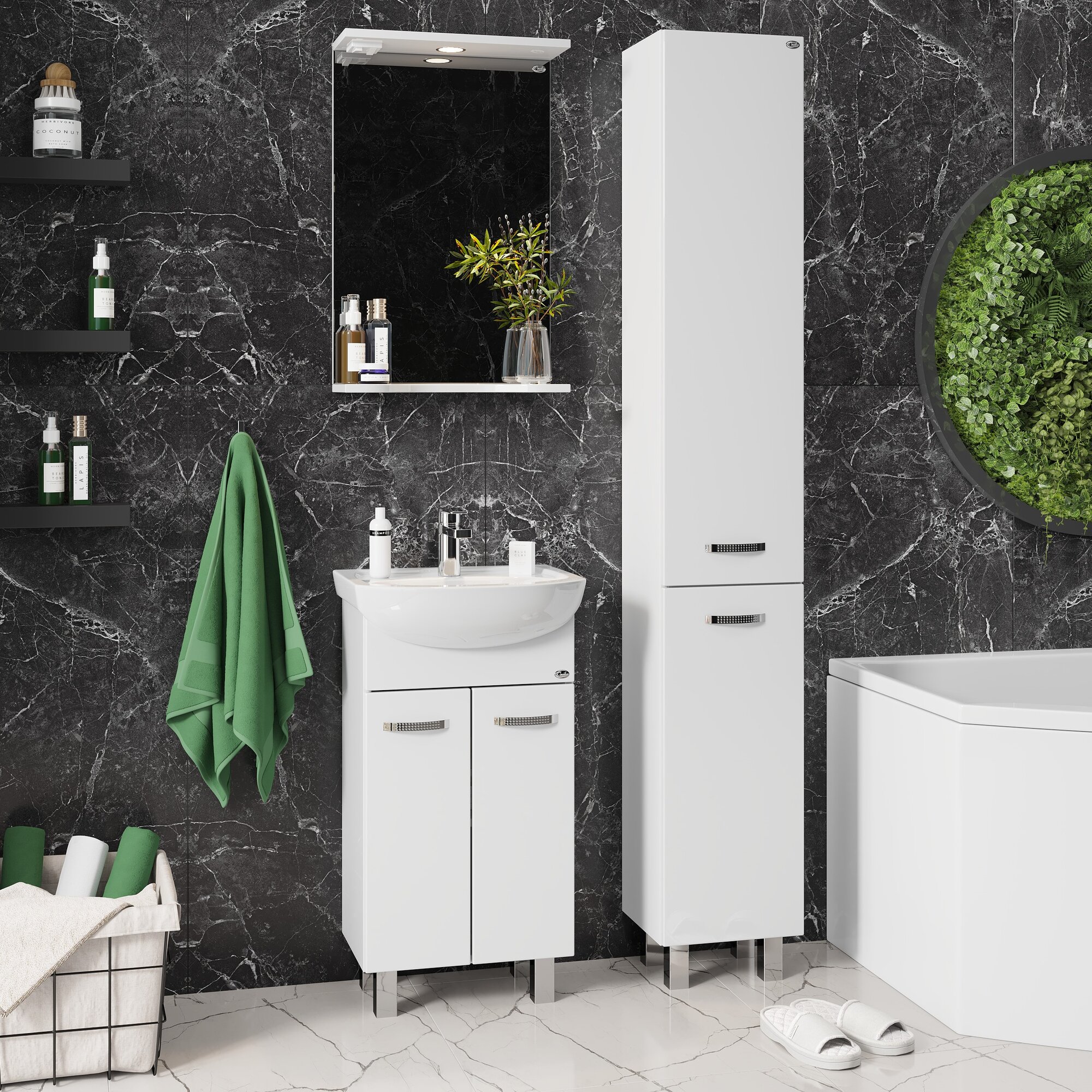 Зеркало со шкафом Onika Элита 60.01 R 206022 с подсветкой Олива Белая МДФ / ЛДСП, стекло