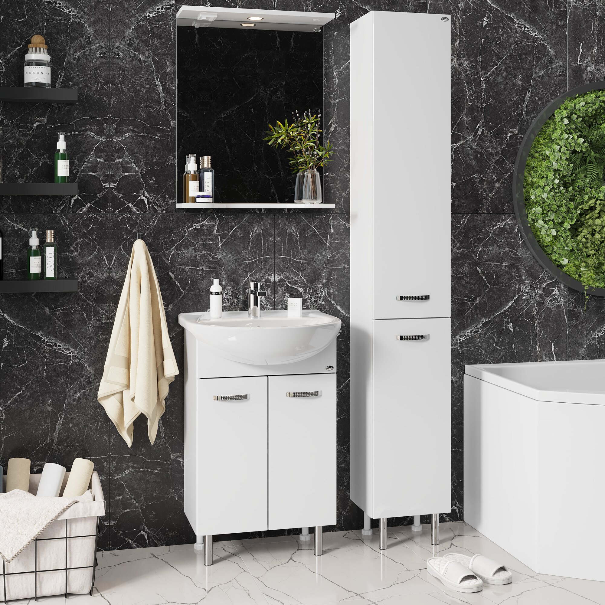 Зеркало Onika Коралл 60.01 206001 с подсветкой Белое МДФ / ЛДСП, стекло