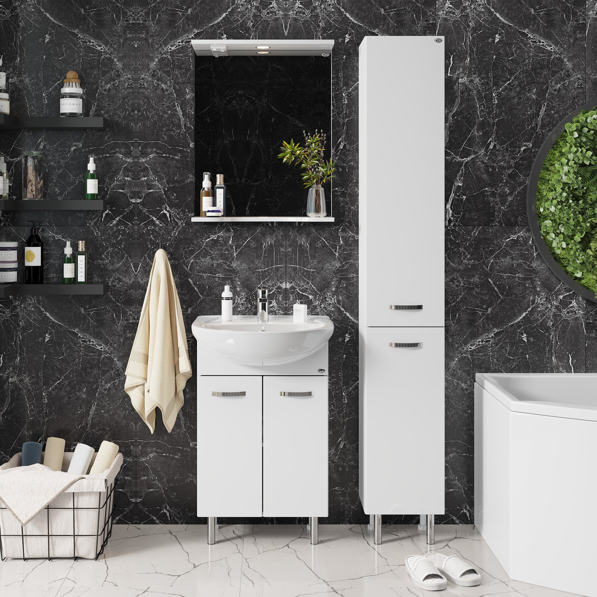 Зеркало со шкафом Onika Лайн 58.01 L 205819 с подсветкой Белое МДФ / ЛДСП, стекло