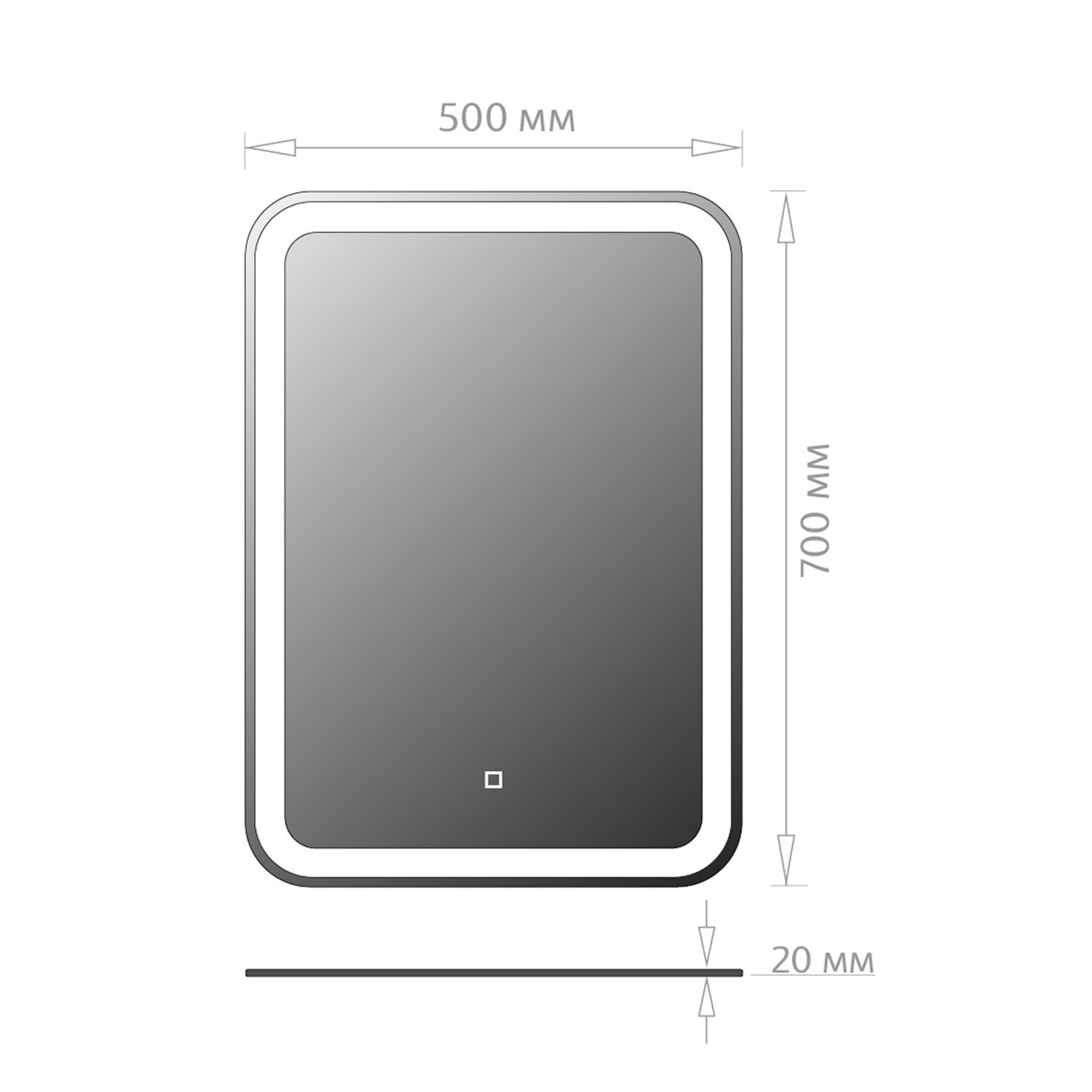 Зеркало настенное для ванной КерамаМане 70*100 см с холодной подсветкой 6000 К с сенсорной кнопкой