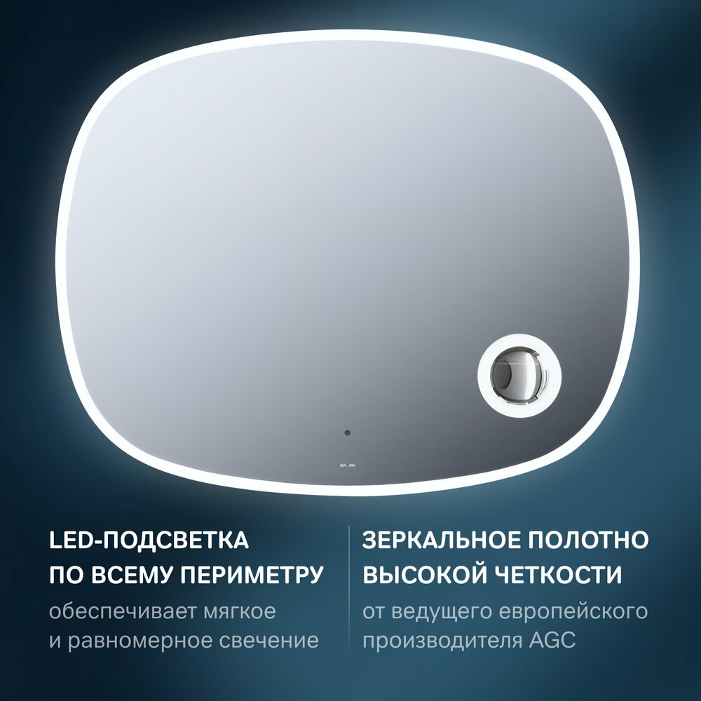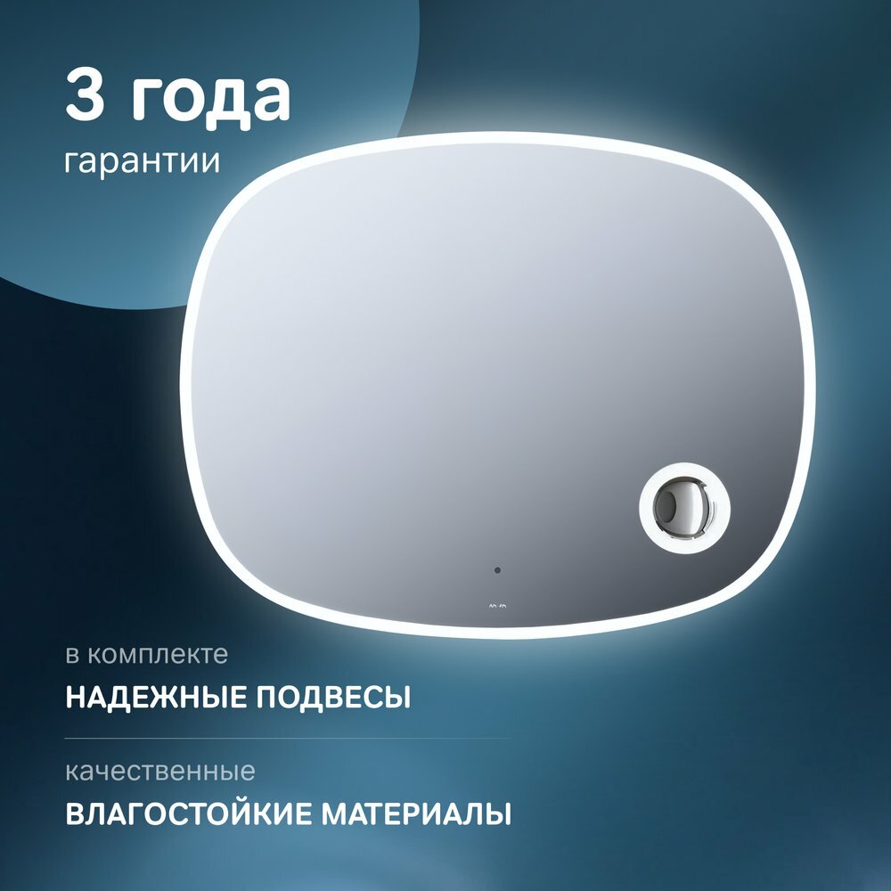 Зеркало настенное для ванной КерамаМане 70*100 см с холодной подсветкой 6000 К с сенсорной кнопкой