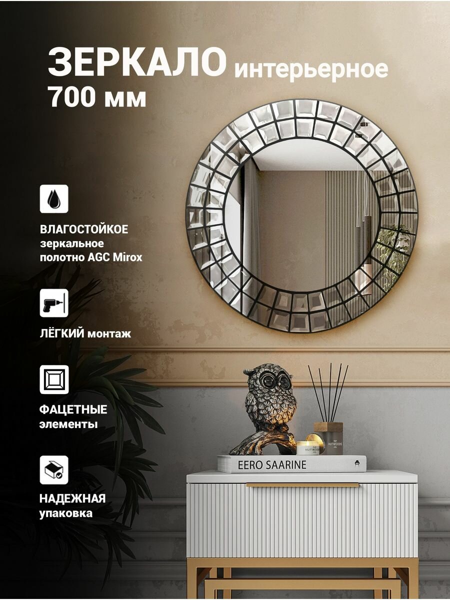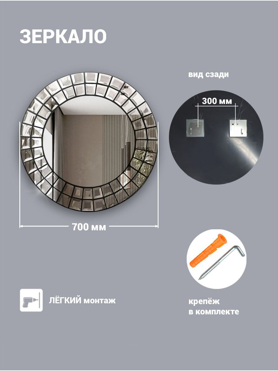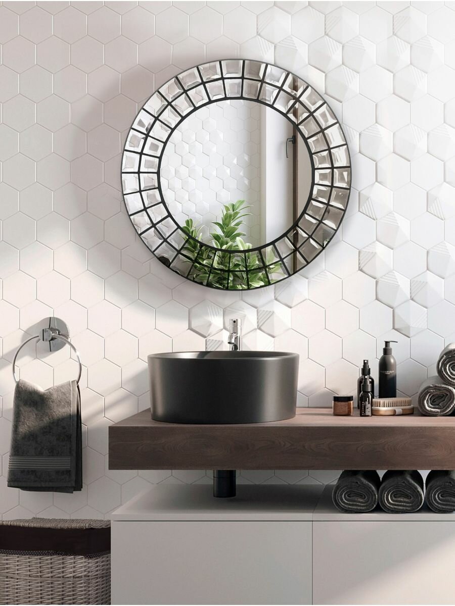 Зеркало круглое для ванны "Дом стекла 21", 70x70, без подсветки, с рамой интересное: