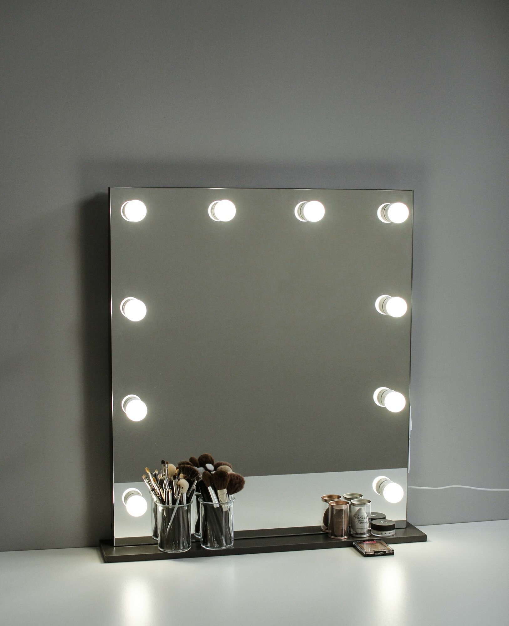 Гримерное зеркало на подставке безрамное с выключателем и розеткой графит интересное: