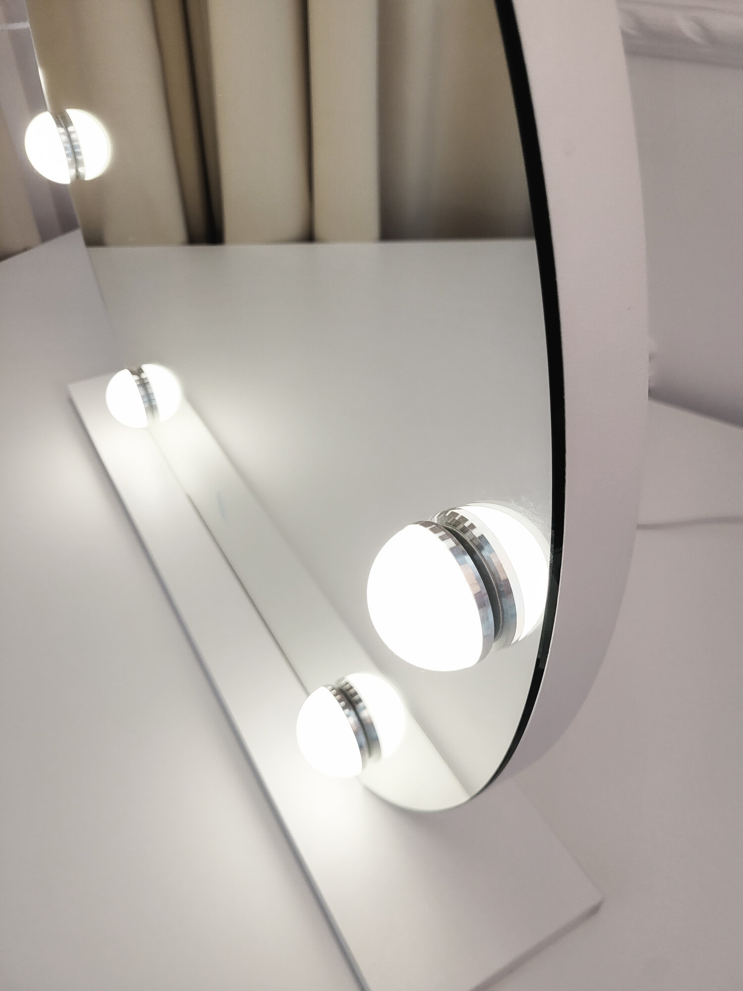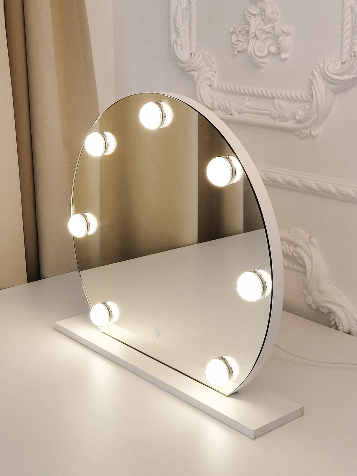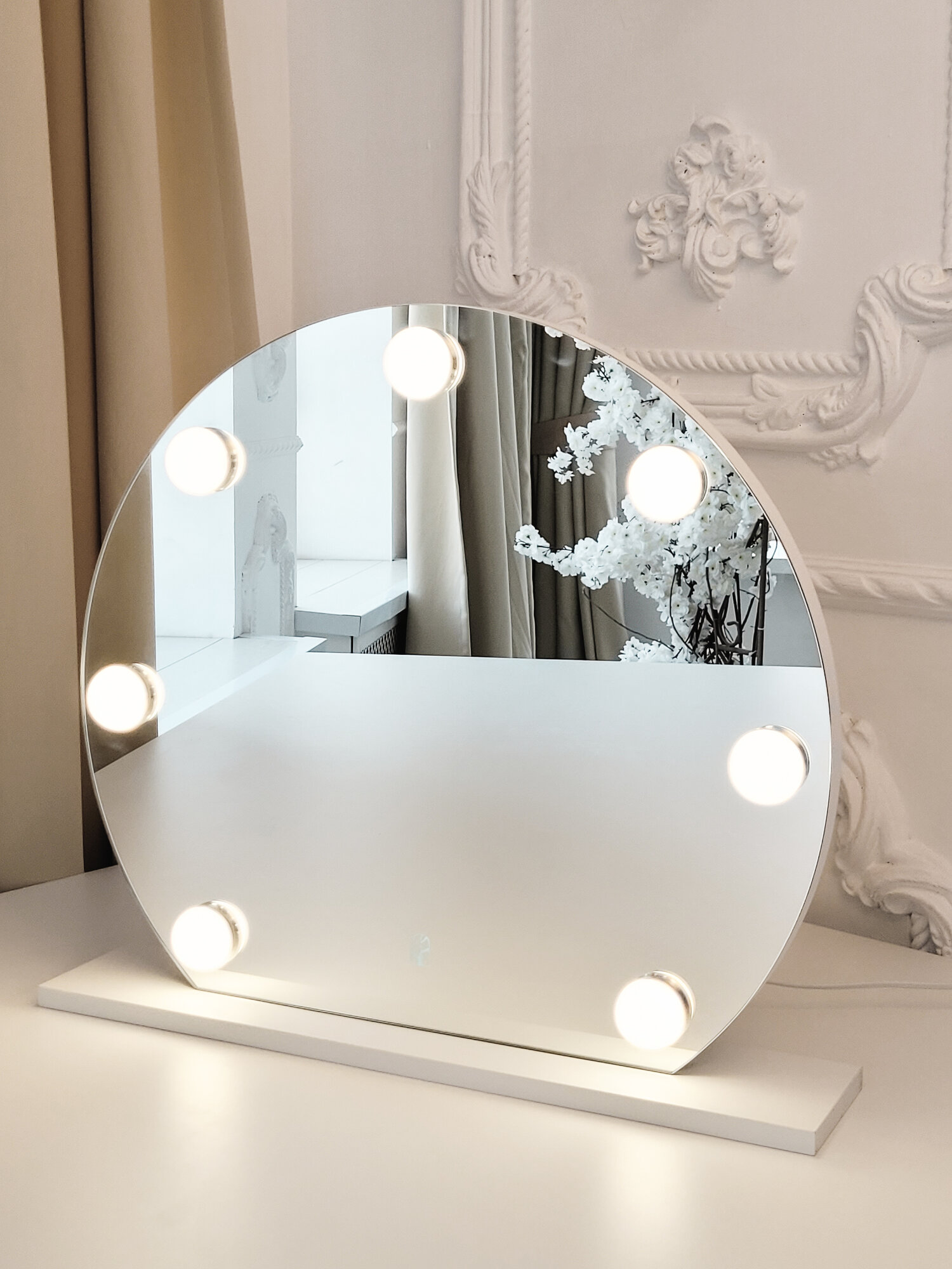 СохранитьНастольное зеркало на подставке с лампами, кнопка сенсор, 52*52см Белое интересное: