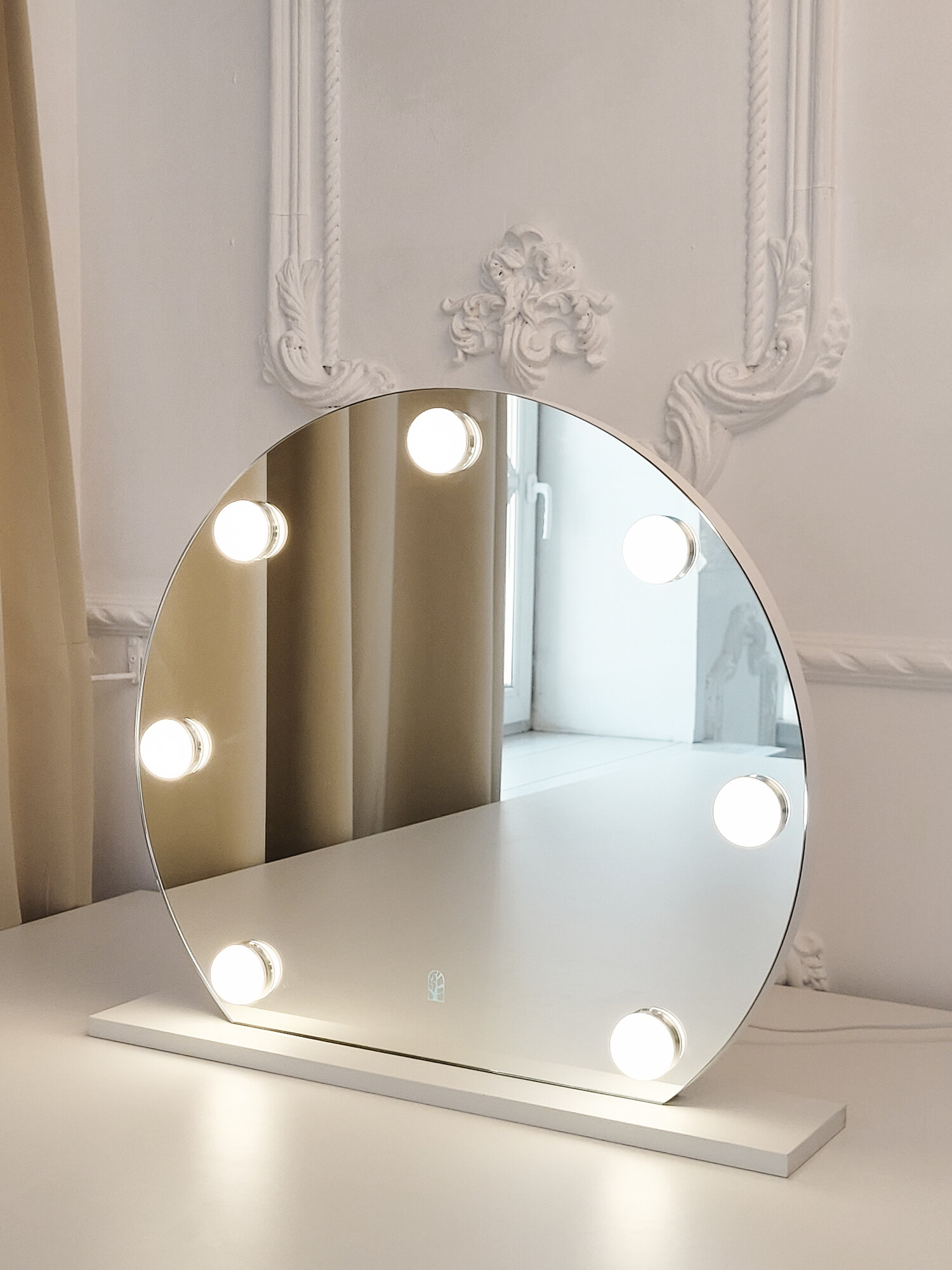 Настольное зеркало на подставке с лампами, кнопка сенсор, 70*70см Белое