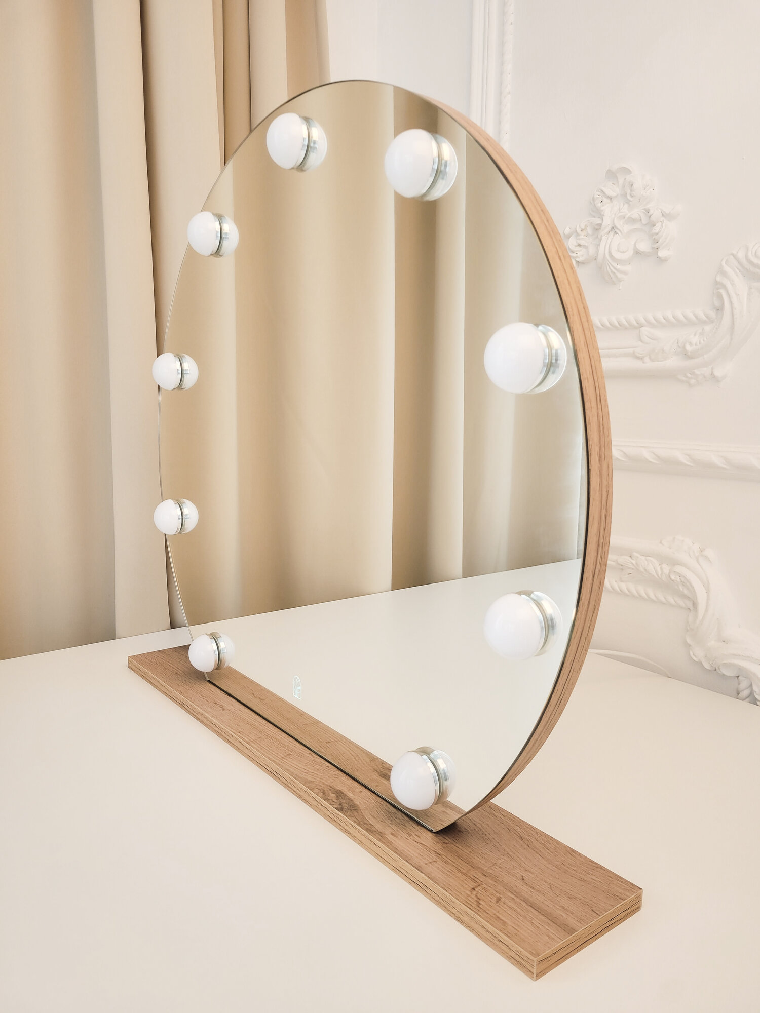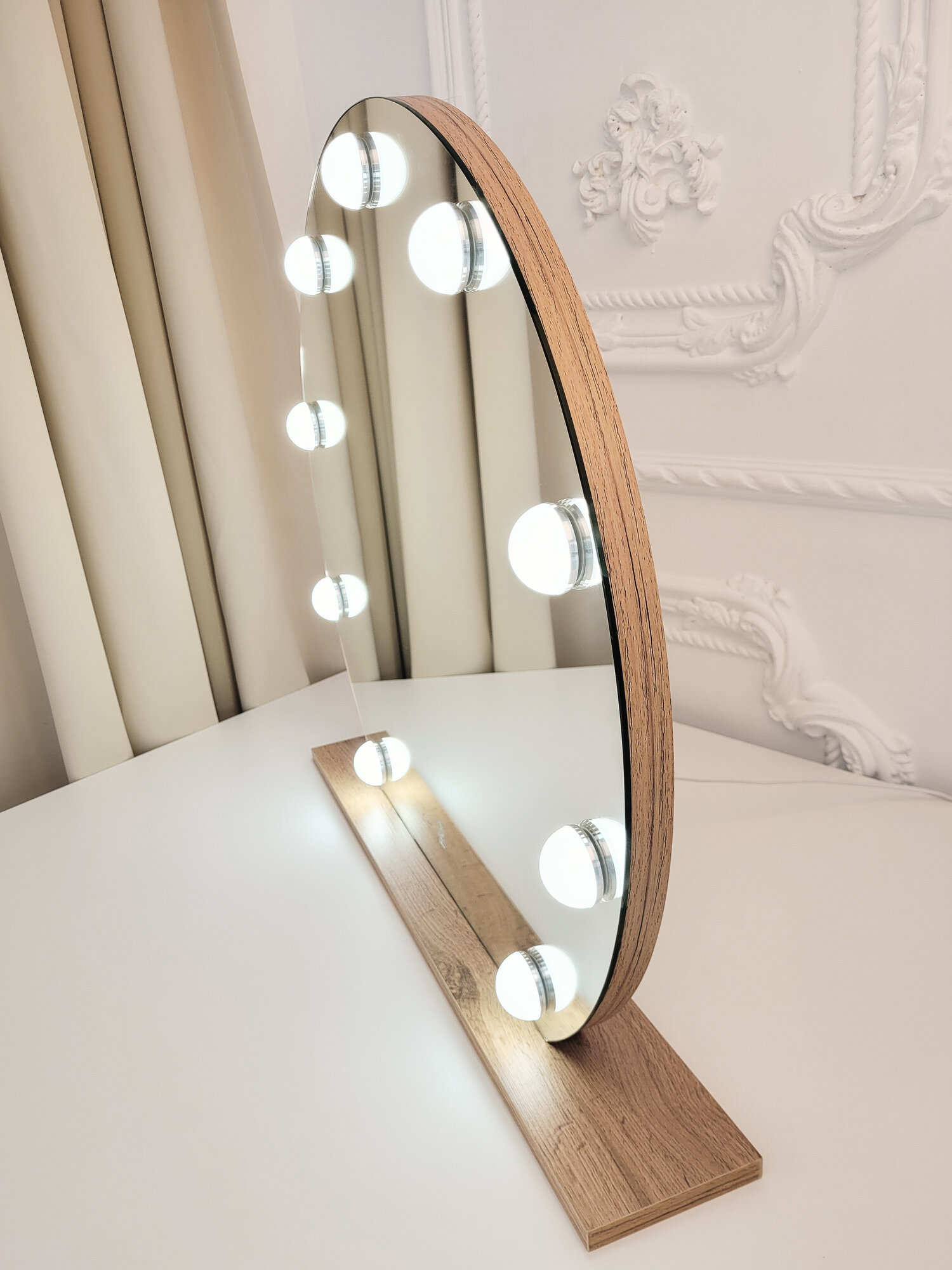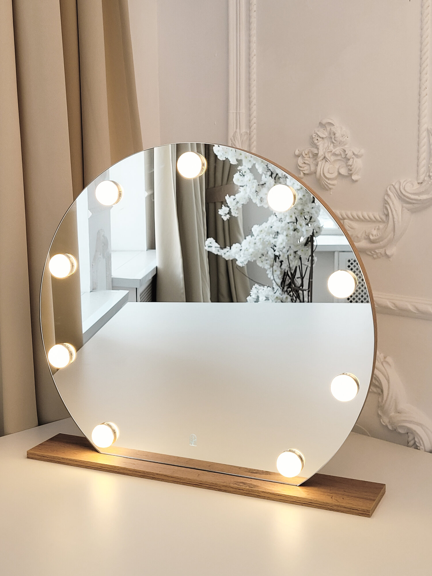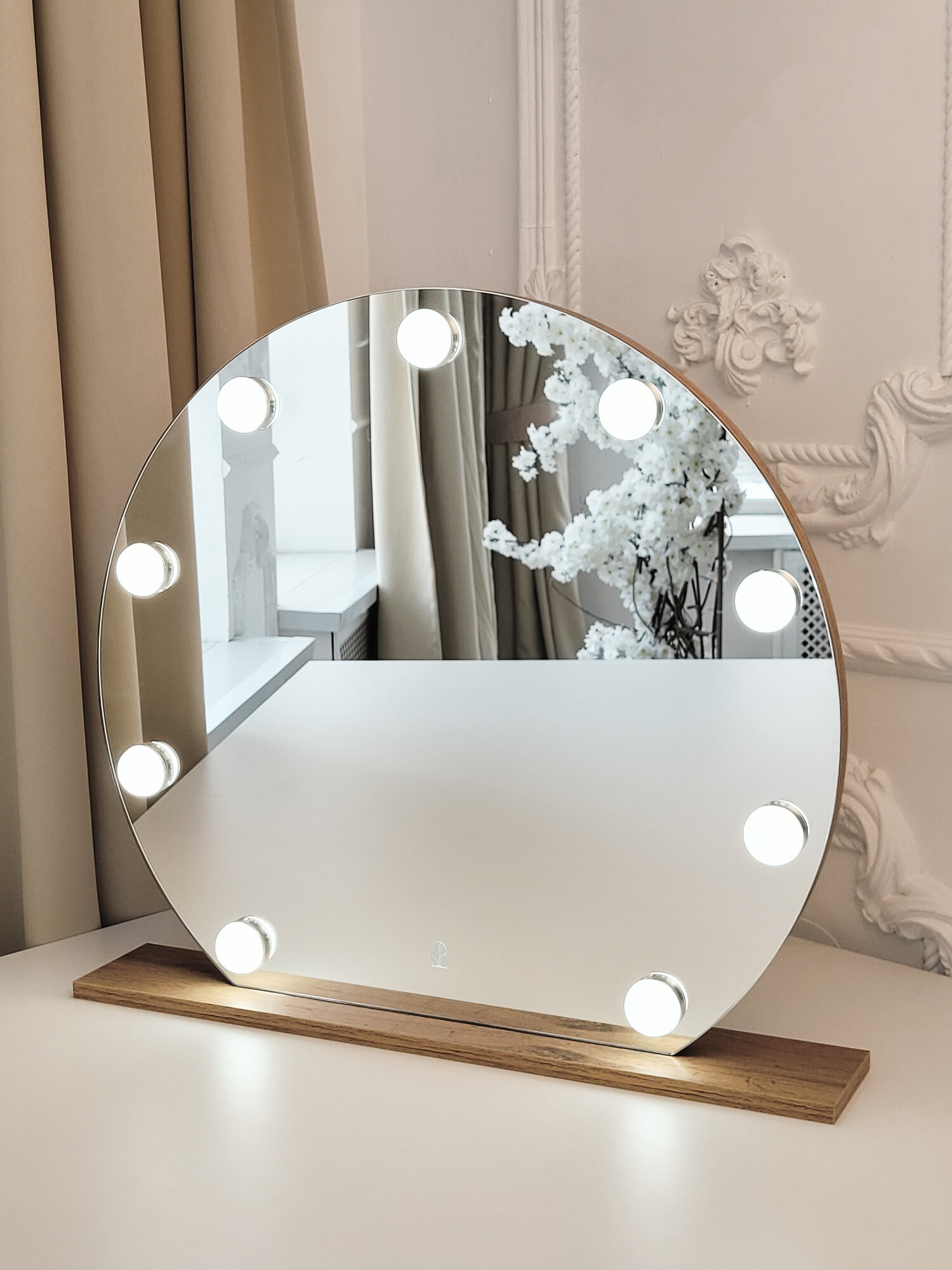 Настольное зеркало на подставке с лампами, кнопка сенсор, 70*70см Дуб вотан