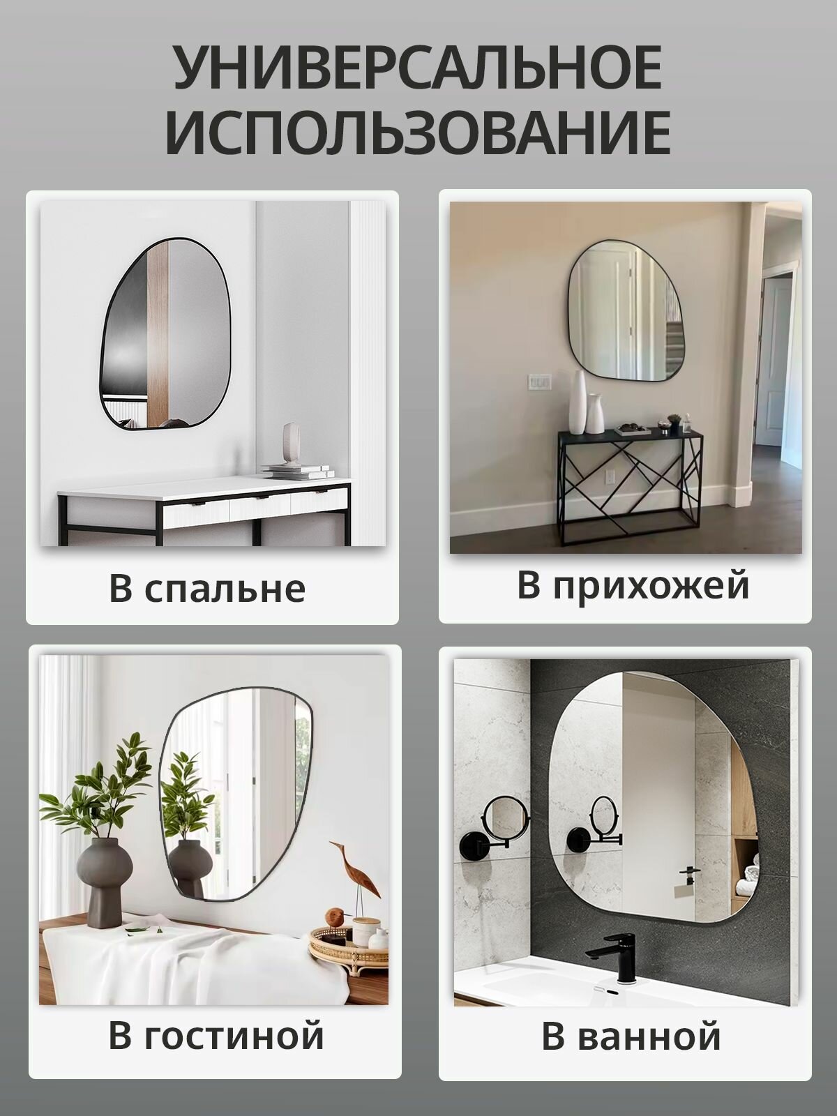 Зеркало настенное с черной рамкой фигурное Z-14 74х79.5 см интересное:
