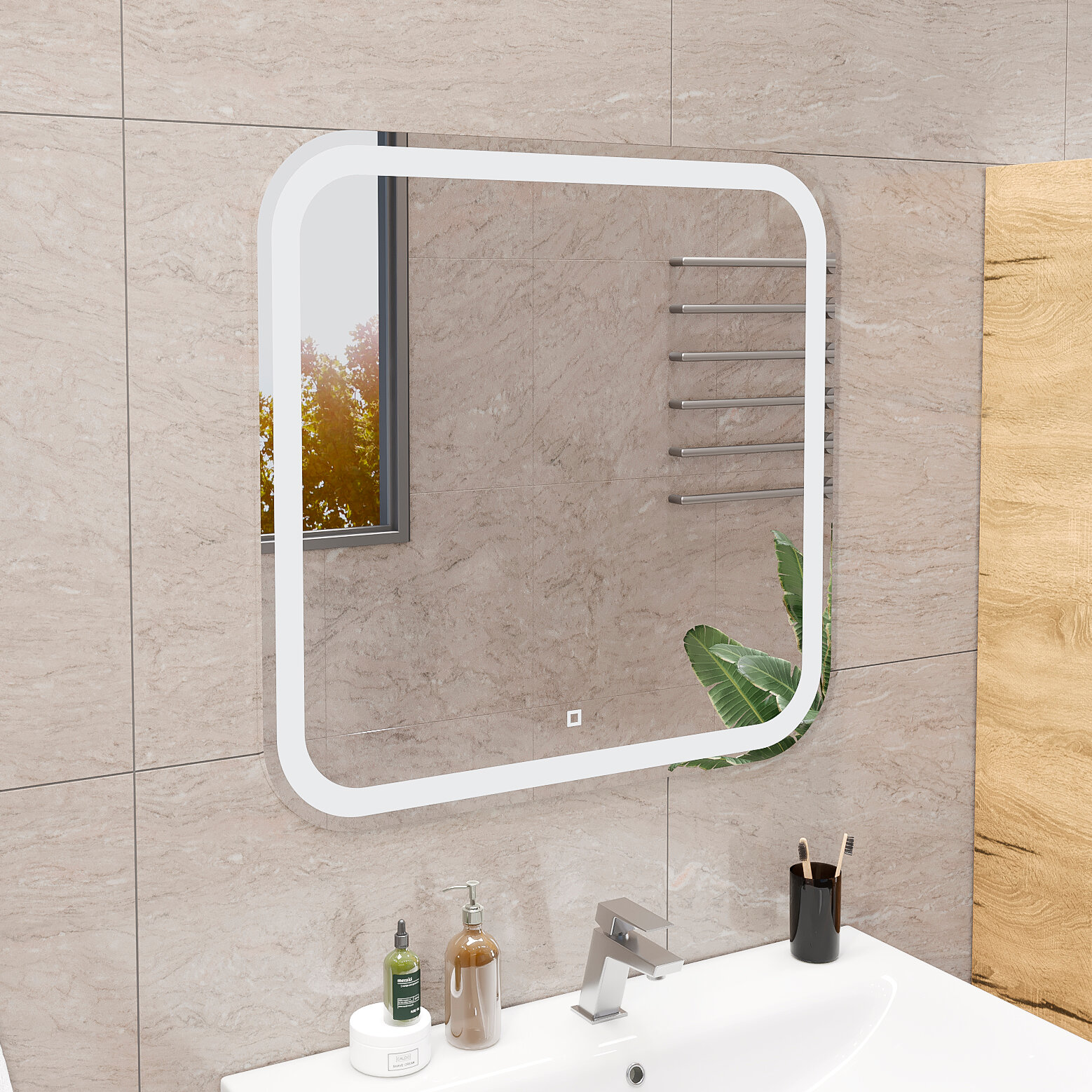 Зеркало настенное для ванной КерамаМане 70*100 см с холодной подсветкой 6000 К с сенсорной кнопкой