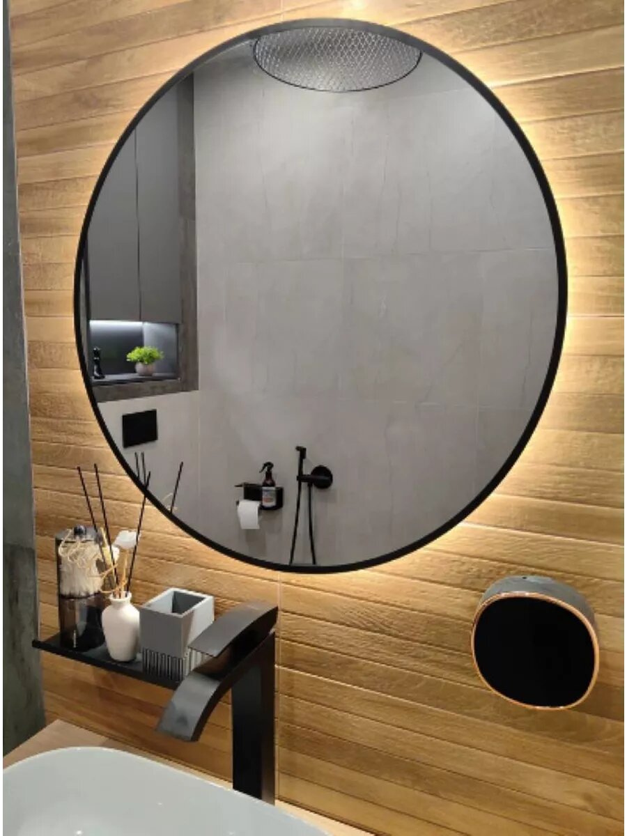Зеркало 70 см с подсветкой и антипаром, сертифицировано