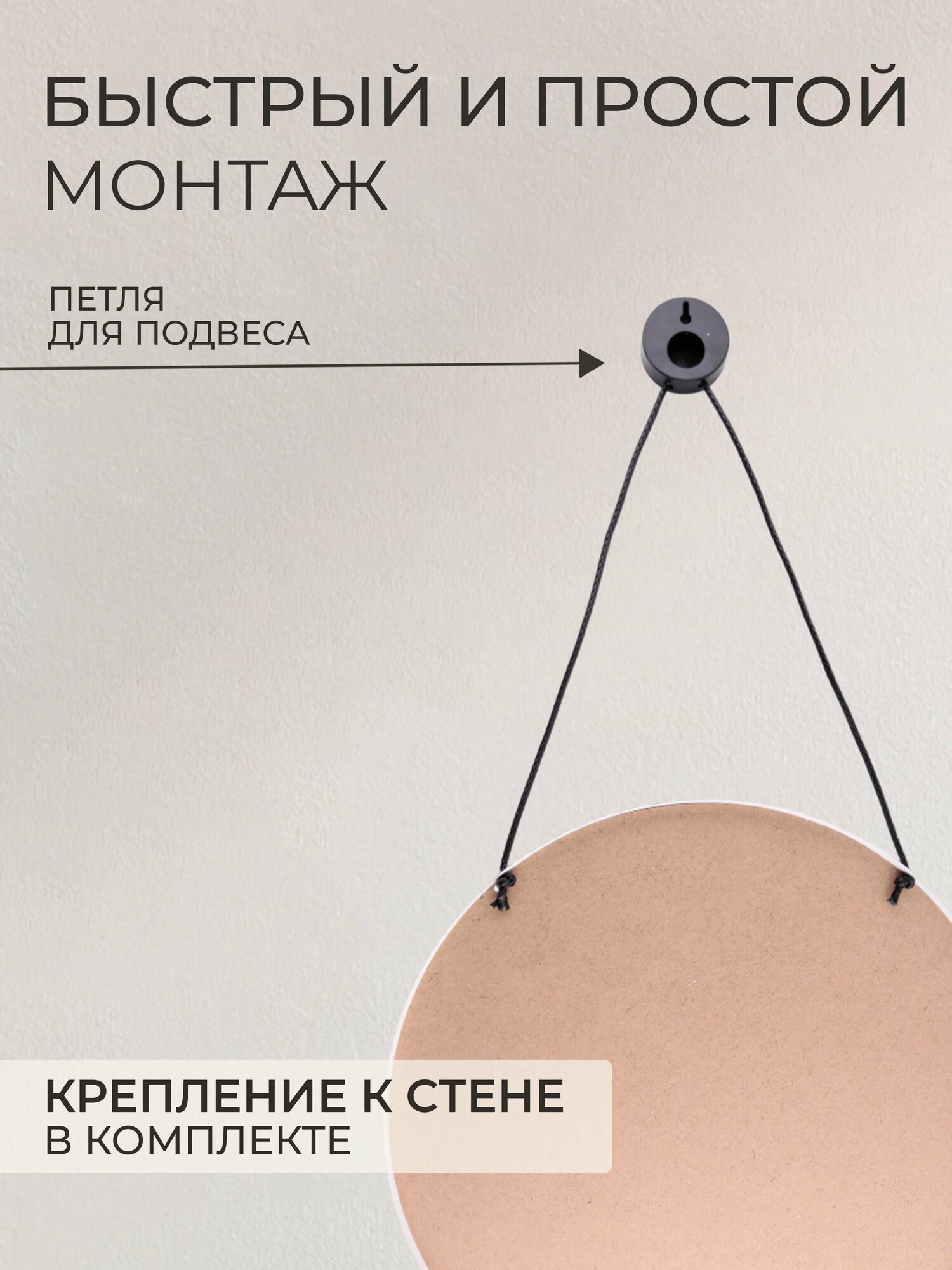 Купить Зеркало настенное интерьерное круглое с ремешком 50 см Рубин