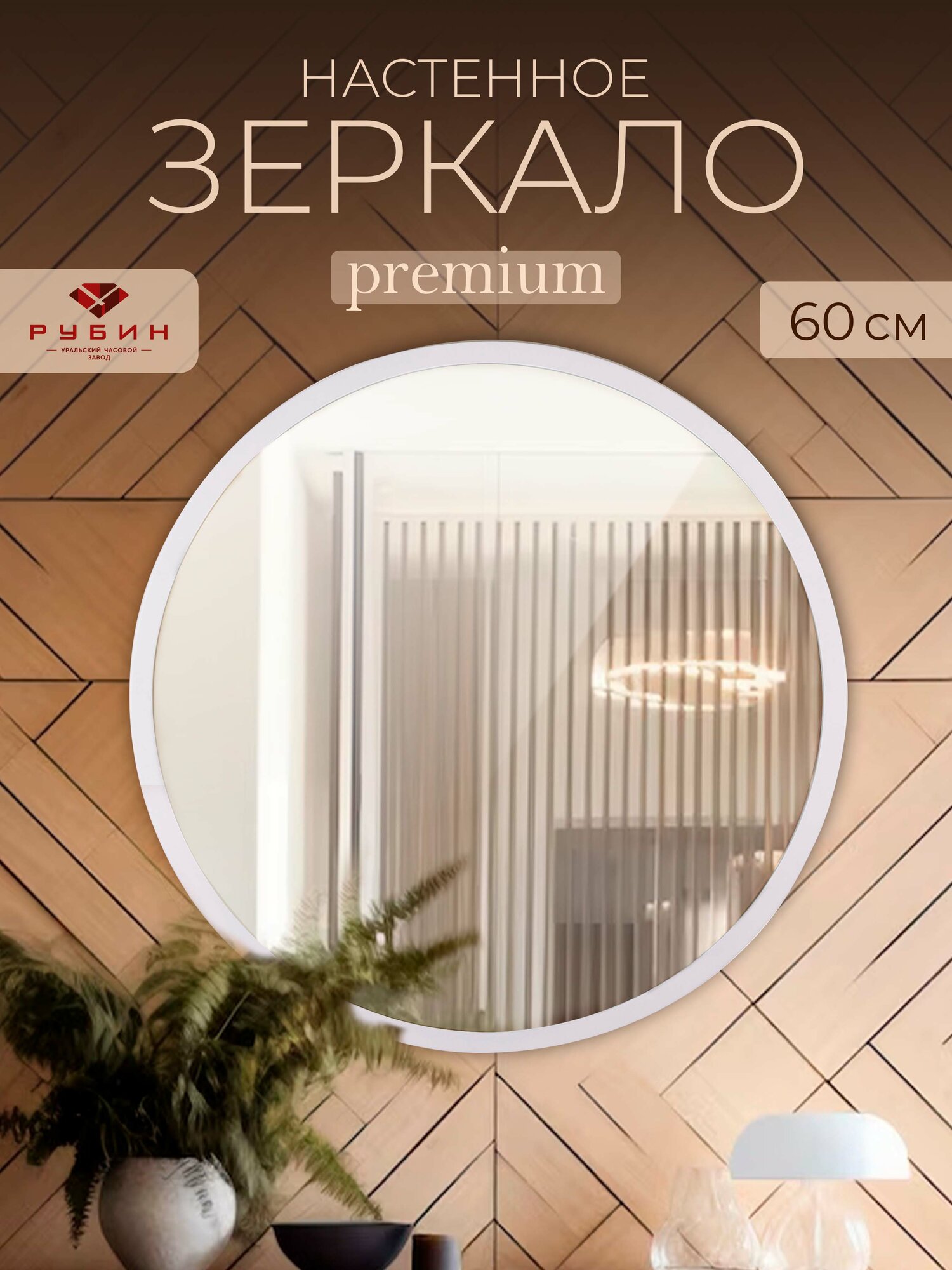 Зеркало настенное круглое диаметром 60 см с креплением Рубин в прихожую, в салон