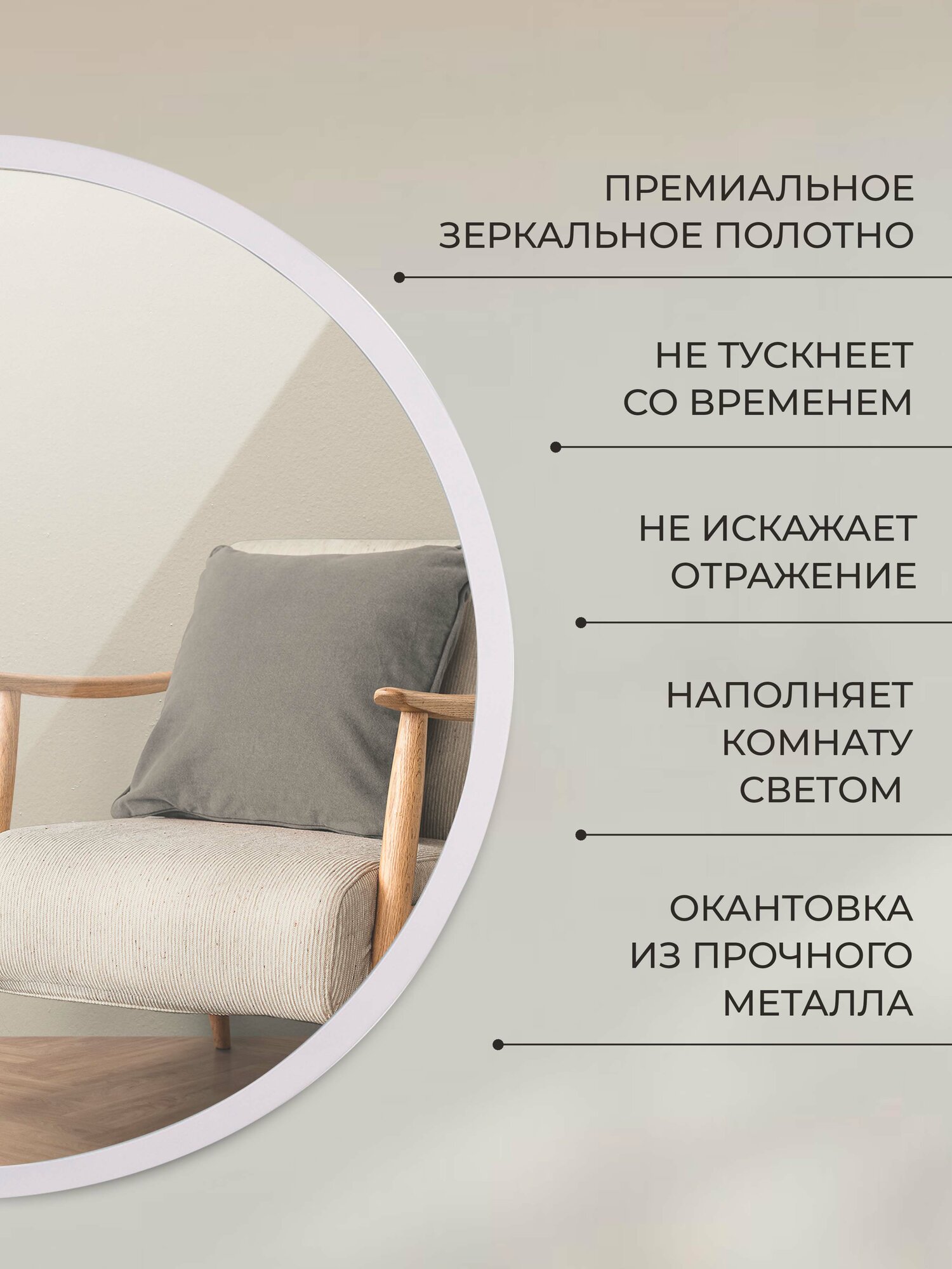 Купить Зеркало интерьерное настенное в круглом корпусе, 60 см, Рубин