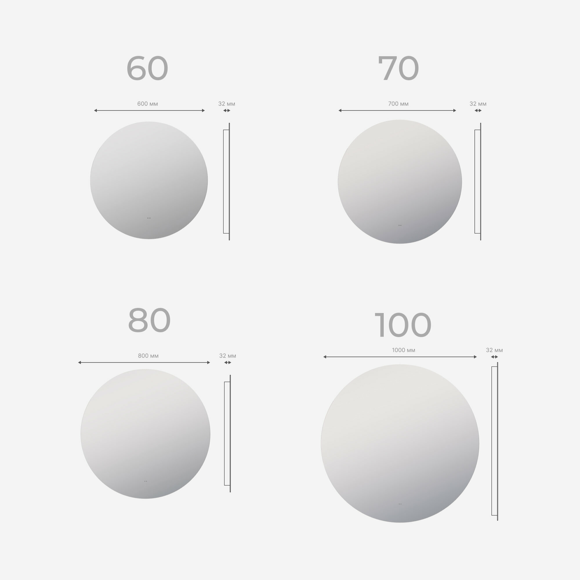Зеркало с подсветкой в ванную 60х60 см Otti Comfort бесконтактным включением на взмах и подогревом 5000K интересное: